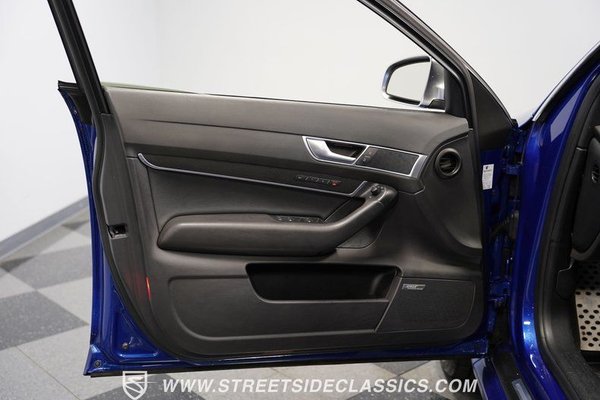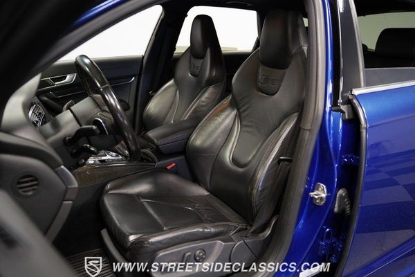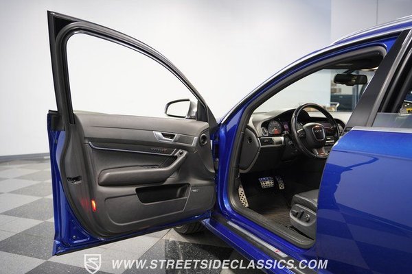 Transformed by German AutoHaus in Woodinville, Washington, this 2006 Audi A6 V10 Avant S6 Tribute wears an eye-catching Sepang Blue finish that amplifies its athletic wagon profile. The full repaint from 2015 gives this German performance machine a distinct presence on the road. RS6-style rocker panels, S6 front bumper, RS grille, and a rear hatch spoiler contribute to its muscular appearance. Quad exhaust tips peek out from below, while 20-inch Rotor design wheels wrapped in 255/35ZR22 front and 255/35ZR20 rear Bridgestone tires put the power to the pavement. The blacked-out roof and dark tinted windows add a subtle stealth factor to this high-performance family hauler.
