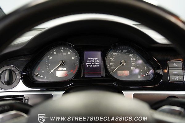 Inside, the black leather interior features front and rear seats sourced from an S6, offering both luxury and support. Carbon fiber accent trim throughout adds a performance aesthetic, while the S6 door sill plates and aluminum pedals reinforce the sporting intentions. The S6 steering wheel with paddle shifters puts complete control at your fingertips. Modern amenities include cruise control, dual climate controls, memory driver's seat, push button start, and heated seats for year-round comfort. The Bose audio system with aftermarket Apple CarPlay/Android Auto connectivity ensures your driving soundtrack is always on point.