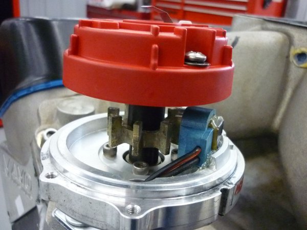 MSD billet distributor. Slip collar, locked out, brass gear.