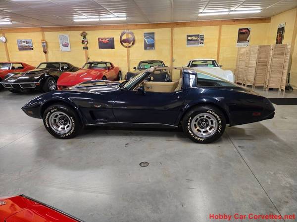 1979 Dark Blue L82 4spd Manual Corvette For Sale For more information visit: https://www.hobbycarcorvettes.net/corvette/1979-dark-blue-l82-4spd-manual-corvette-for-sale CASH PRICE: $ 22000 Transmission: ManualEngine: L82/350Mileage: 95,291 Original Details Numbers-matching L82/350 engine with 95,291 original miles. Equipped with tan leather interior, 4-speed manual transmission, power steering, power brakes, power windows, A/C, tilt and telescopic steering column, AM/FM/cassette radio, alloy wheels, original air-cleaner assembly, and more. We drove this Corvette two hours home, and it ran and drove great the entire trip. Maintenance just completed includes: fresh oil and filter, full chassis inspection and lubrication, new front brake calipers, front brake pads, front brake hoses, sway-bar links, upper and lower control-arm bushings, upper and lower ball joints, front shocks, tongue bushing, fuel hoses, and additional miscellaneous improvements. GM only produced 5,670 Dark Blue corvettes out of 53,807 total production in 1979. 1979 was the highest production year for the C3 generation of the corvette.