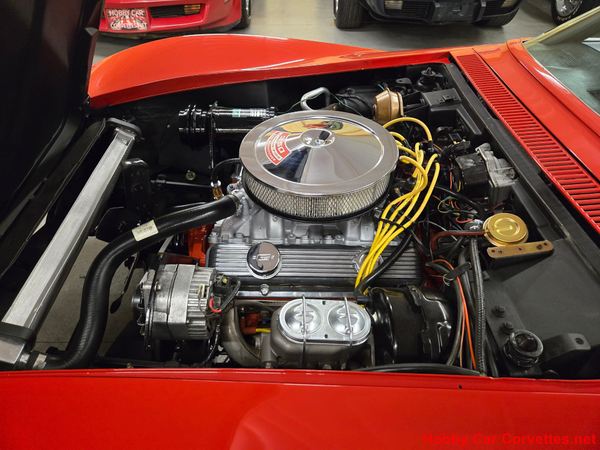 The previous owners made a number of performance and handling upgrades to this Corvette. The front and rear suspension have been upgraded with Vette Brakes suspension components, including Vette Brakes upper and lower control arms. It also features rack-and-pinion power steering, MSD ignition, Hooker Header side pipes, a Holley aluminum intake, and a Holley carburetor. The original engine has been rebuilt, and the car was refinished in a base coat/clear coat paint job.