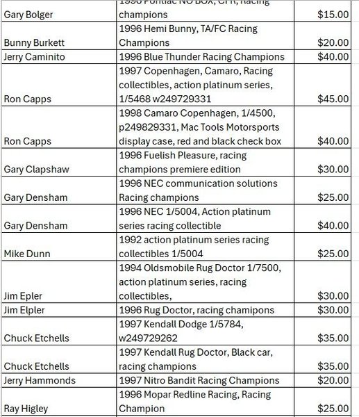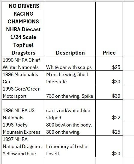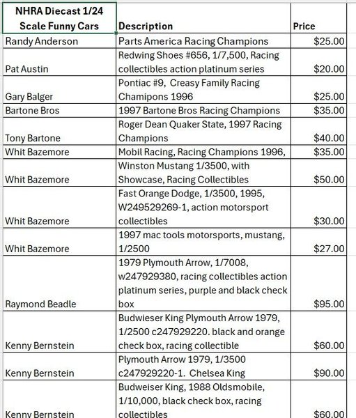 Diecast drag racing collectibles