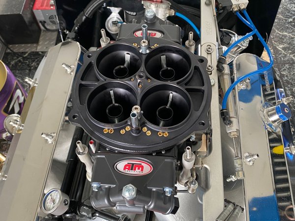 555 BBC Bowtie block with ported Brodix BB2 heads and an ATM 1150 billet carb. Aftermarket case Powerglide with a new BTE converter. MSD Grid, SLE, and newer K&R wiring throughout with a 16v alternator system. Swingarm rear (American-style) with QA1 double adjustable shock. 23.5” cage with adjustable pedals and removable seat insert, Pro 1 belts good through 2027, and slicks with only 8 passes.