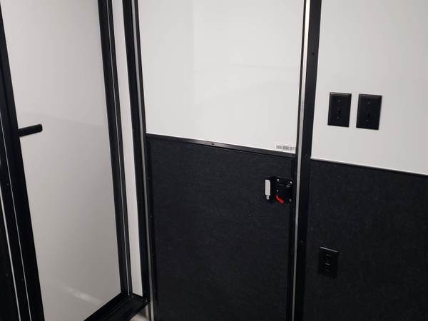 White aluminum walls w/ carpeting on bottom 36"