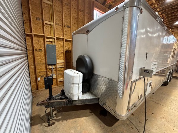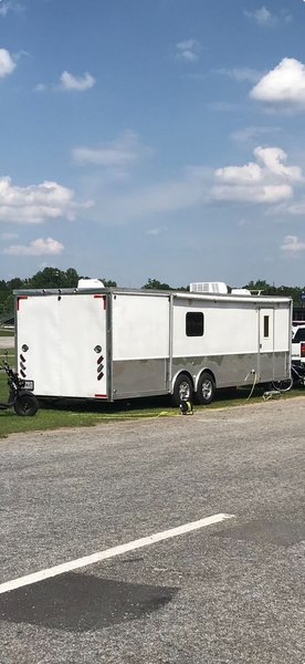 2007 STORM 28FT, fully self contained, and insulated, higher ceiling, LP generator, toilet, shower, sink, water heater, refrigerator, microwave, AC (needs replacement), fold out bunk beds, LP heater (I used ceramic portable), good tires, wheel covers. This is a former STORM demo trailer with all available options. For dragster or door car.