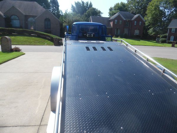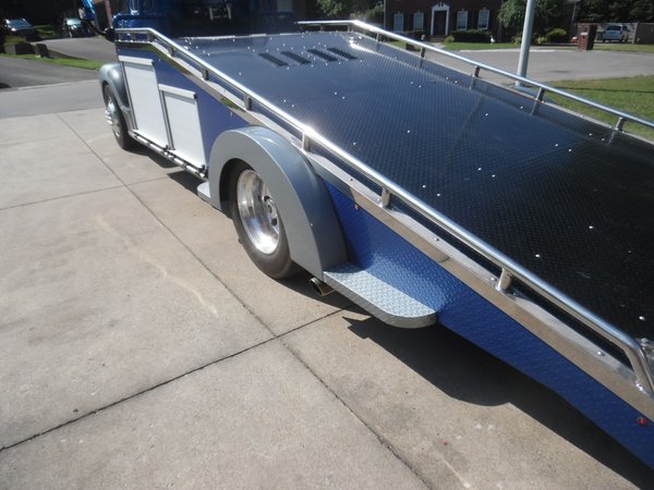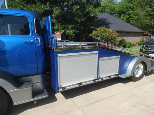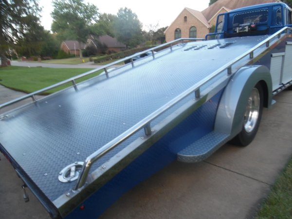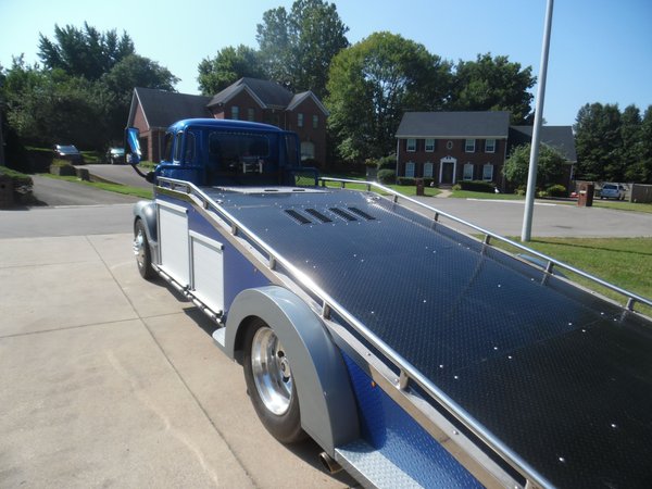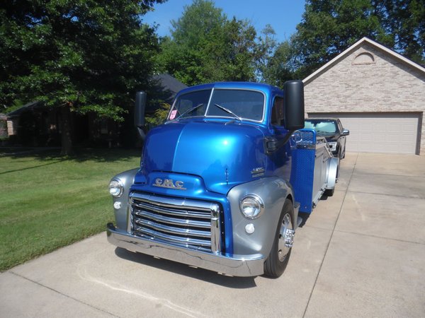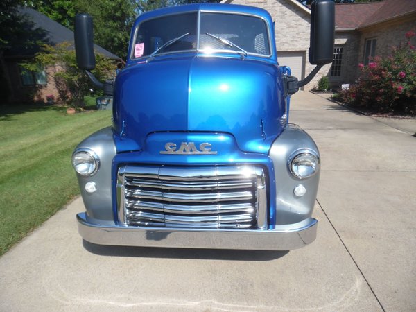 1953 GMC COE cab over total nut and bolt Restoration. 2003 GMC cutaway van chassis. 8.1 Liter Vortex 340 hp w 5 speed Allison overdrive trans. Ride Tech-4 bar spuspension w /4 -3500 pb airbag. 19.5" Alcoa wheels w Aokohama radials. Custom ramp bed w Alumn ramps, roll-up tool box doors w locks. Tie downs. New 9500 lb. winch.