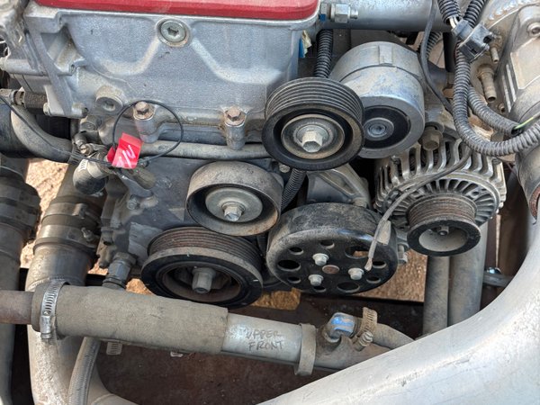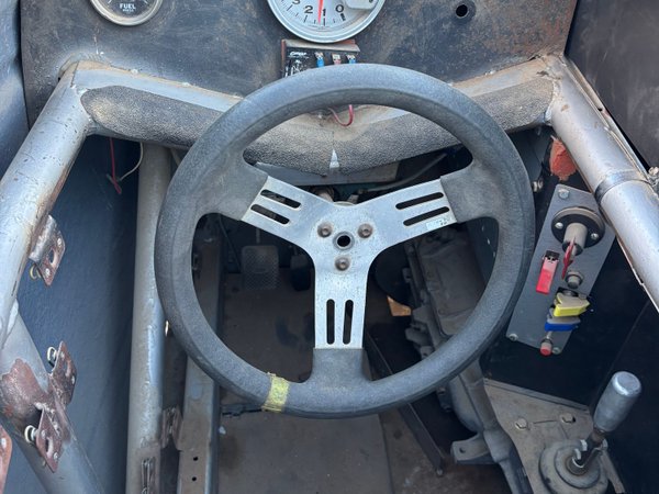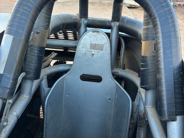 Honda S2000 engine turbo charged with a Ford Mustang 5 speed transmission and a quick change rear axle.