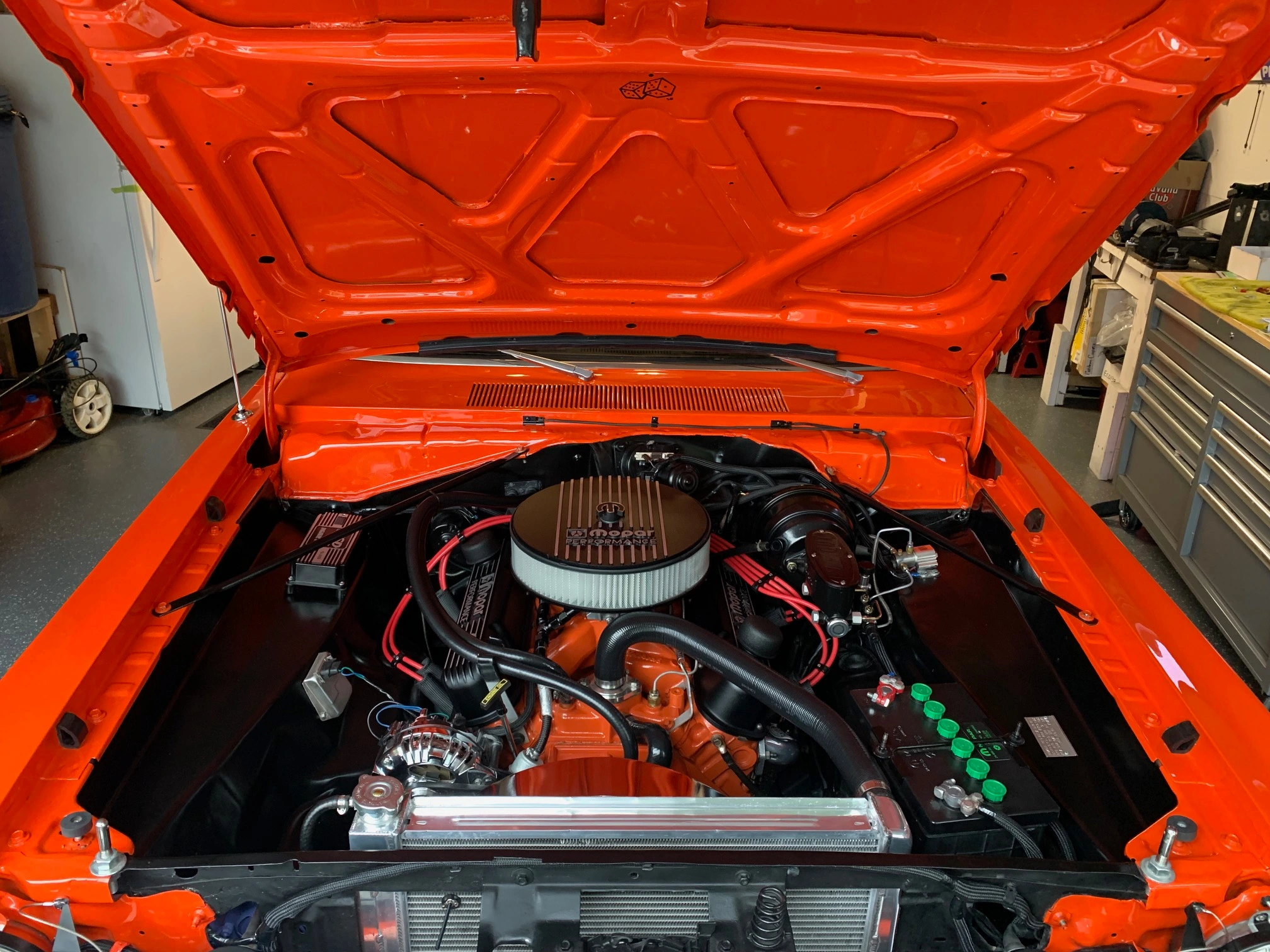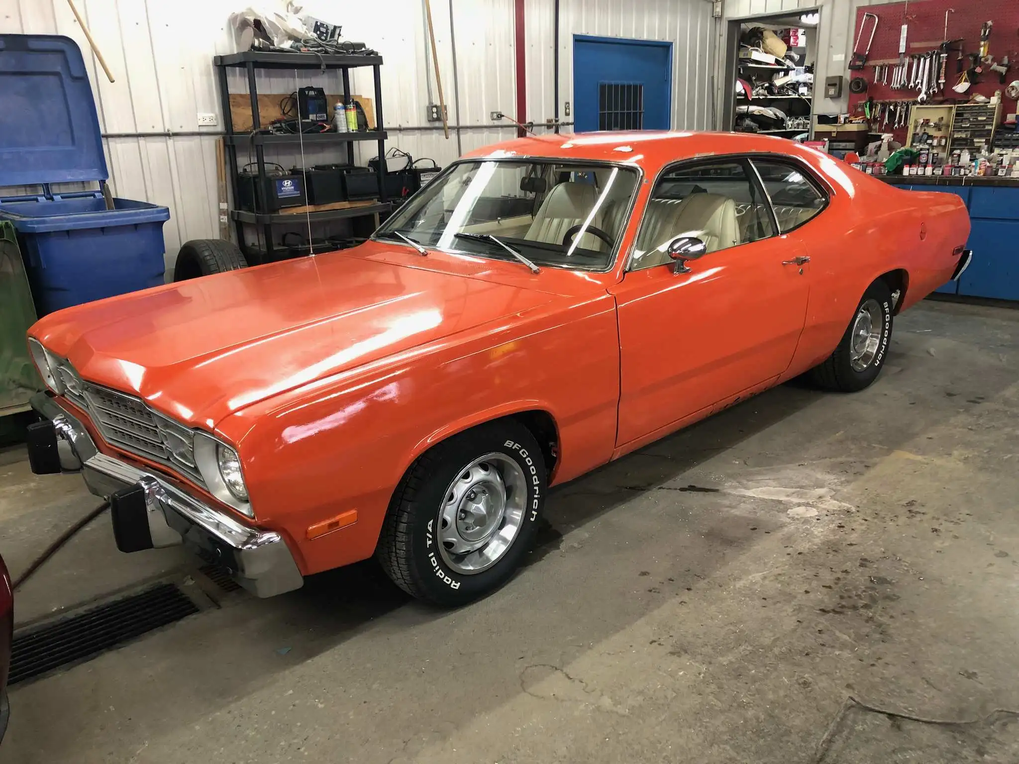 Due to the layers of paint peeling, Shayne noticed that the car had been painted on a few occasions from its original KY5, a yellow blaze. “It had been painted four times with a lot of filler on the body. It was yellow, then burgundy, then white and then orange. The car was repainted by Skinner Automotive in Barrie, Ontario using PPG single stage EV2 Plymouth eye-poppin’ Tor Red or Dodge Hemi Orange. Shayne also surmised that the car might have seen some track time. “When we started to pull the car apart, we found a lot of extra broken bolts and bent components underneath the car. Thankfully, there was nothing major, but I could tell it had been abused. Actually, something I would recommend to anyone interested in restoring a classic car is to buy an American made vehicle. I originally wanted to buy a mid-80’s Porsche 911, but a friend, who is a mechanic, suggested that it would be much more prudent to purchase an American car as parts were more readily available and the price of repairs and accessibility to knowledgeable mechanics were more abundant.” After sealing the deal, Shayne had the car shipped to a local car dealership in Ontario. “I jumped the battery, drove it to a gas station to fulfill its thirst, and the next day, it was taken to a garage where it was on a hoist for about 8 weeks.” Shayne never had the time to restore other classic cars, but he enjoys tinkering with the Duster each winter. “Whether I’m driving by myself or with my wife to get away for a Sunday drive - usually to a car show - it’s wonderful to share those moments. Above all, it proves with a little elbow grease and some investments, how fulfilling it is to see a dream come true. To see one’s vision and hard work gradually take shape. The fact that I took this car, that was pretty beat up, and gave it a new life, emerging as a beautiful alternative, makes me feel very happy.”