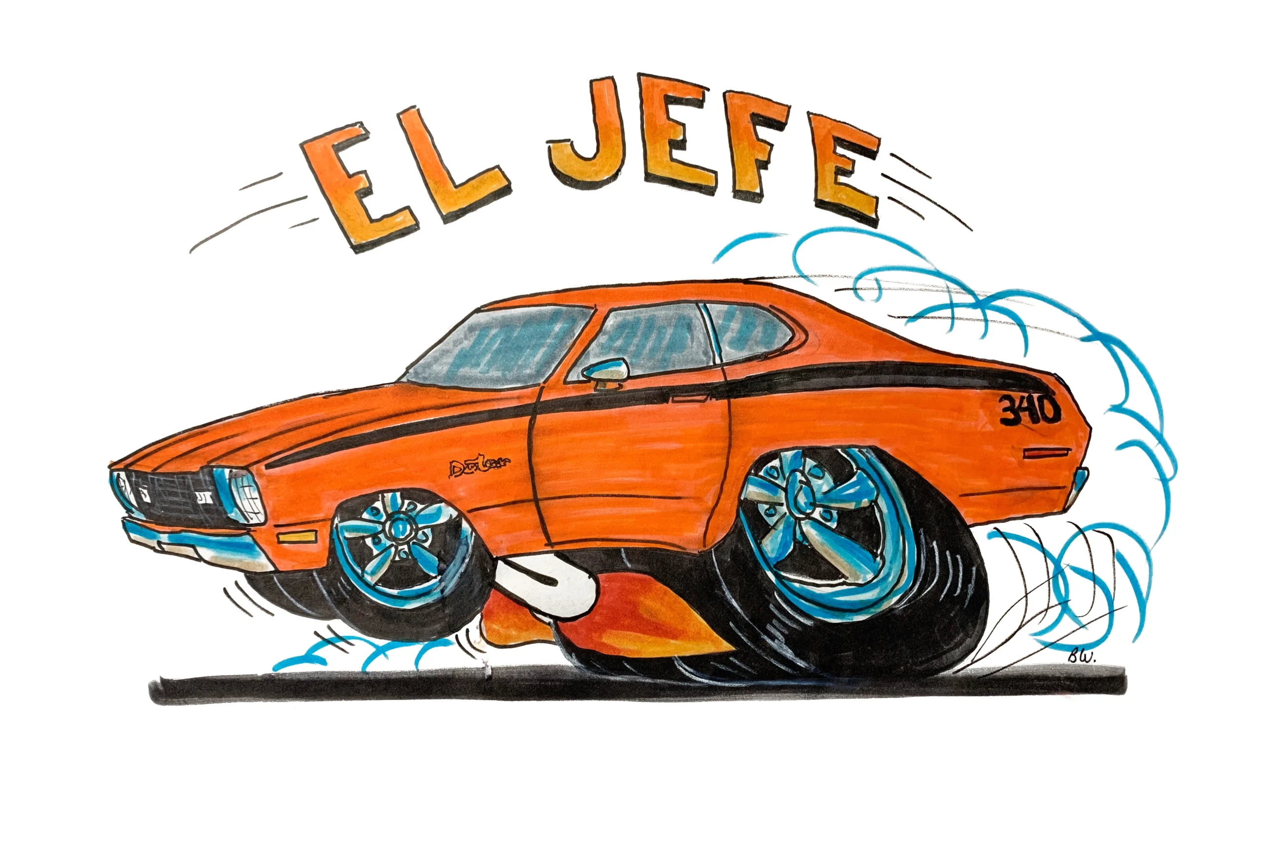 “The day we reviewed the Duster, my wife and I left at 3:00 am in the morning and arrived at the dealership at noon. I’d like to mention how proud I am of my wife, Kimberley, who was so supportive when she drove us for 9 of the 18 hours to the dealership. We stayed up for almost 24 hours anxious to see the car. Fortunately, I did buy it, so it was worth the trip.” Shayne gives a heartfelt grin. “I couldn't have done this journey without her. It is a family affair for when the car was being restored, my daughter, Taylor named the car El Jefe, and my other daughter, Sydney, painted our family crest (a pair of dice) underneath the hood.” Claude’s daughter and her boyfriend were there to help with questions since Claude, the owner of the dealership, could only converse in broken English. “I poured over the car for three hours; looking under the hood, in the trunk, and when the car was on the hoist.