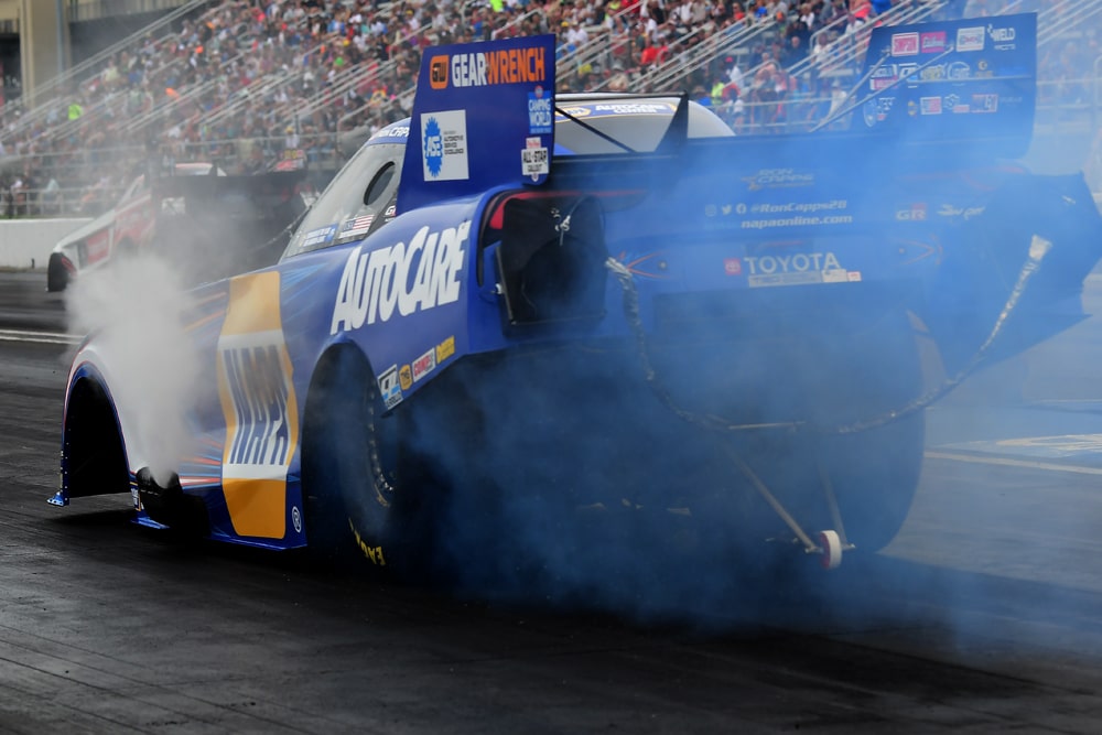 Pep Boys smartly decided to conduct a Callout for Funny Car – and that Sunday race landed in Ron Capps’ corner. Capps has been trying to win at Indy since he started in Funny Car with Don “Snake” Prudhomme’s team back in 1997. His wife, Shelley, has a birthday around the time of the Nationals and that means the whole family comes out. For 24 years they’ve been disappointed, close but never taking home the coveted Wally trophy from this race.