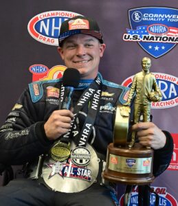 Austin Prock won everything except the No. 1 seed for this year’s Cornwell Quality Tools U.S. Nationals – that honor went to his teammate Jack Beckman, who was quickest in the sole night session on Friday. Prock took home the Mission #2Fast2Tasty season title even though Kalitta Motorsports’ J.R. Todd won Indy’s final race, the PlayNHRA Funny Car Callout, won the regular season championship and won his sponsor’s title race, earning $330,000 in the process. That’ll buy plenty of good red wine and barbecue fixins.