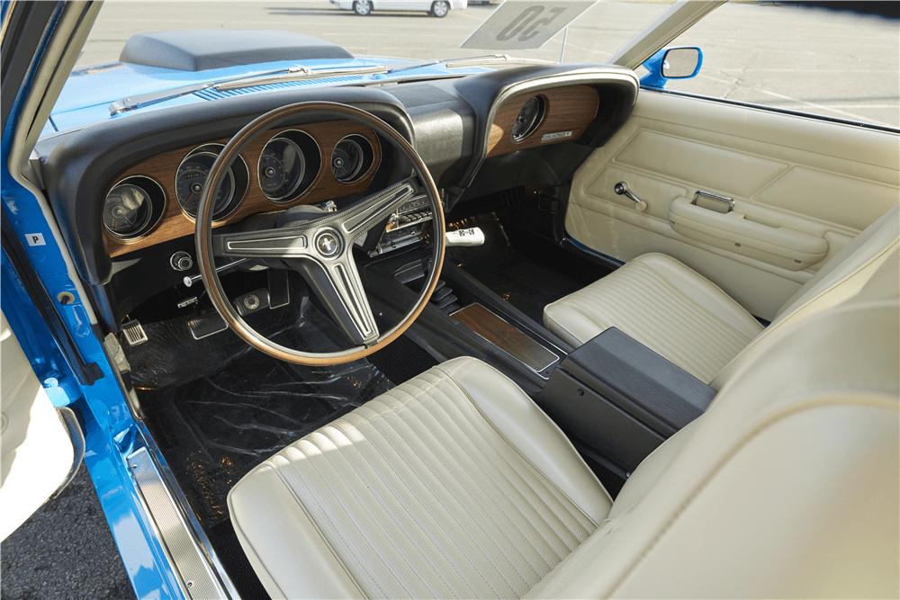 Dashed in an eye-catching coat of Grabber Blue, this immaculate Boss 429 check all the boxes. Boasting an 429/375hp Boss engine with 4-speed Toploader transmission and a 3.91 Traction-Lok rear axle, there’s more than enough juice to appeal to the hardest of drivers. More than that, the car wears original panels! The sumptuous interior features high-back white vinyl bucket seats, floor-mounted shifter, tachometer and trip odometer, AM radio and rim blow deluxe steering wheel.