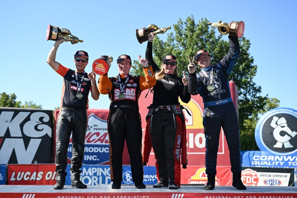 After winning this race in his dominant rookie Funny Car season last year, “We came out guns blazing, and it just put a little bit of an extra pep in our step. To go out there and execute and do the job and have a dominant performance like we did last year, and then to come back again this year and do it just surreal,” Prock said. “It was a dream of mine to win a championship, but you never know if that’s going to happen. They say, when you win the U.S. Nationals once, it puts you in an elite group. When you do it back-to-back, it’s an even more elite group.”