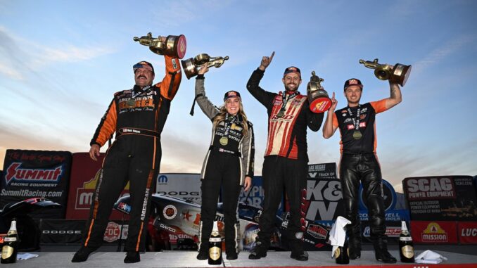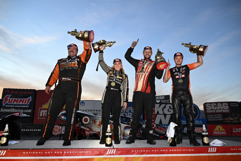 Hagan, B. Force, Glenn and Herrera celebrate their Las Vegas victories – NHRA photo