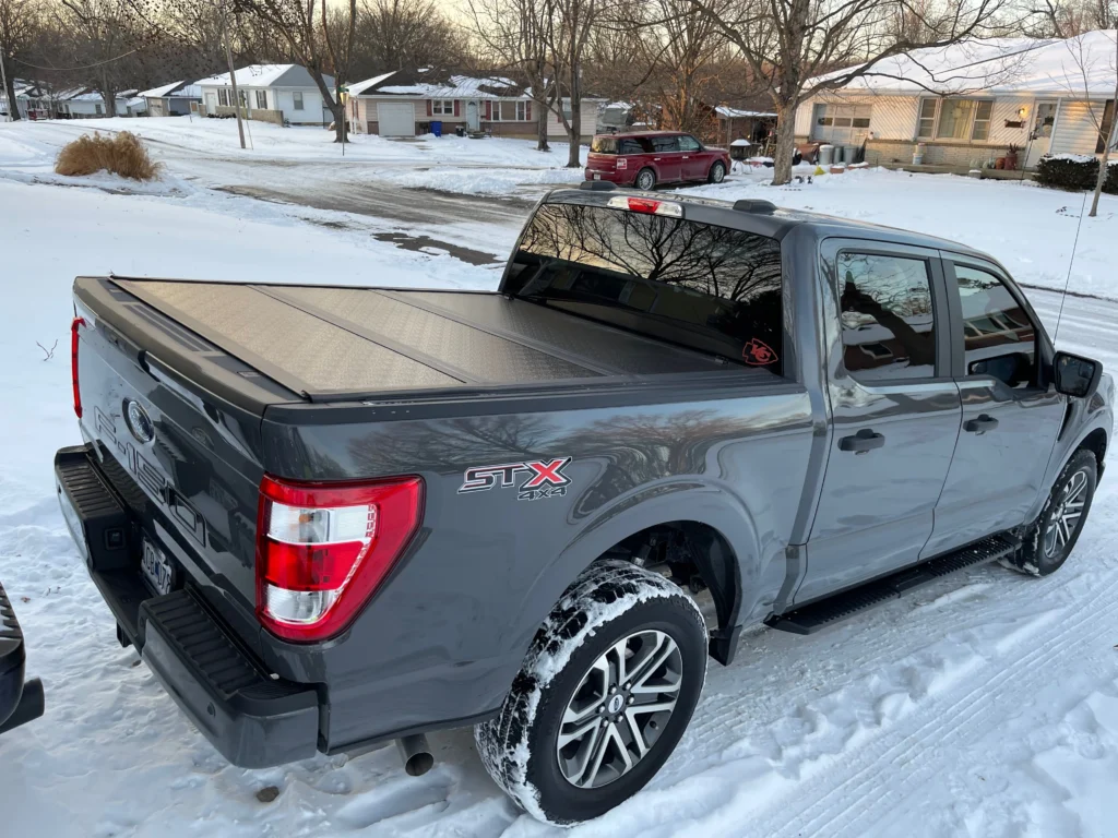 For those who prefer a tri-fold design, the UnderCover Fusion is an excellent choice. Made from lightweight but durable aluminum, it’s perfect for areas with heavy snowfall. Its folding design allows easy access to the truck bed while maintaining a secure fit. The pre-painted finish ensures it integrates seamlessly with your truck’s appearance.
