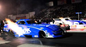 Everything changed on Saturday. The skies were clear and cool, just right for quick and fast racing. That sort of weather perfection garners quick laps and that’s what NHRA got, as third-generation racer Austin Prock, filling in for medically excused Robert Hight, a three-time Funny Car titleholder with John Force Racing (JFR) earned his 15th No. 1 qualifier of the 2024 season and simultaneously his first NHRA Funny Car championship.