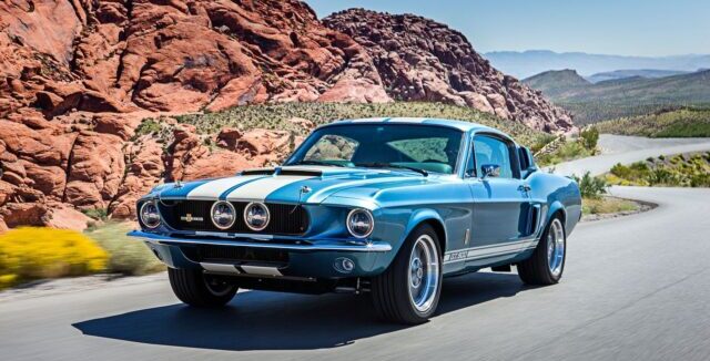 Hi-Tech Automotive’s licensed 1967 GT500 boasts a newly assembled steel body, complete with a fully independent front and rear suspension featuring CNC machined billet aluminum uprights, modern 6-piston calipers, and a GT500 interior upholstered in premium German Nappa leather. The vehicle also includes electric power steering, a customized sound system, electronic handbrake, air conditioning, and more. Engine options, including a naturally aspirated or supercharged 5-liter Ford Coyote V8, or the latest Ford 5.2-liter Predator V8, can be fitted into the chassis, designed to accommodate either a 6-speed manual or the latest Ford 10-speed automatic transmission.