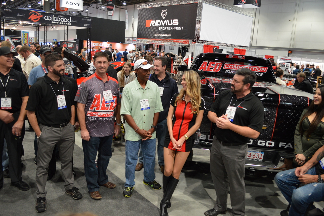 Celebrating the Winner of the AED Performance/RacingJunk Chevy Silverado