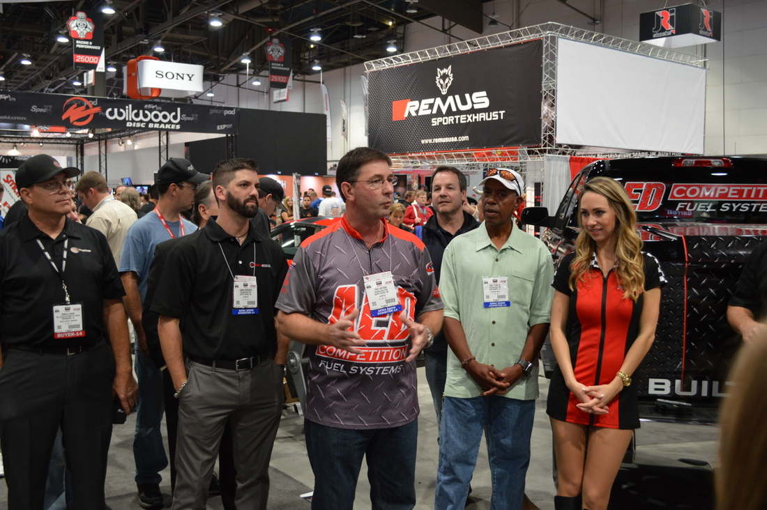 Celebrating the Winner of the AED Performance/RacingJunk Chevy Silverado