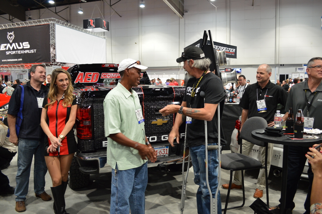 Celebrating the Winner of the AED Performance/RacingJunk Chevy Silverado