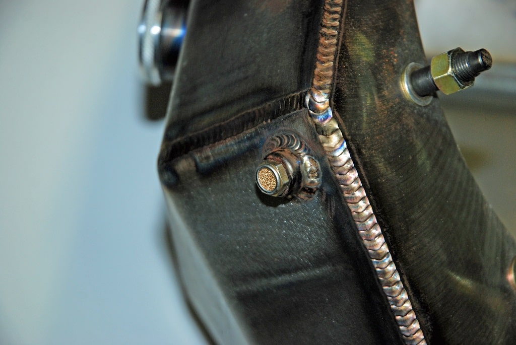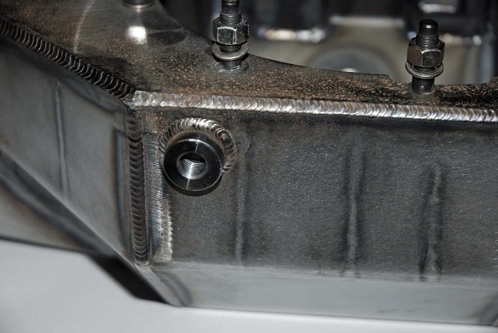 The beginning is a bare 4130 “Pro HD” housing from Jerry Bickel. The housing is based upon a Tig welded 4130 steel center with 3.250 4130-axle tubes. The faceplate is precision milled with water jet cut mounting holes. Screw-in studs are used to mount the third member. It will accept a large 9.5-inch diameter ring gear (although we’ll never use one). The housing works for a four link with 17-inch center, but again, we’re not using one. Finally, it comes complete with a slick billet filler cap, a drain and a housing vent.