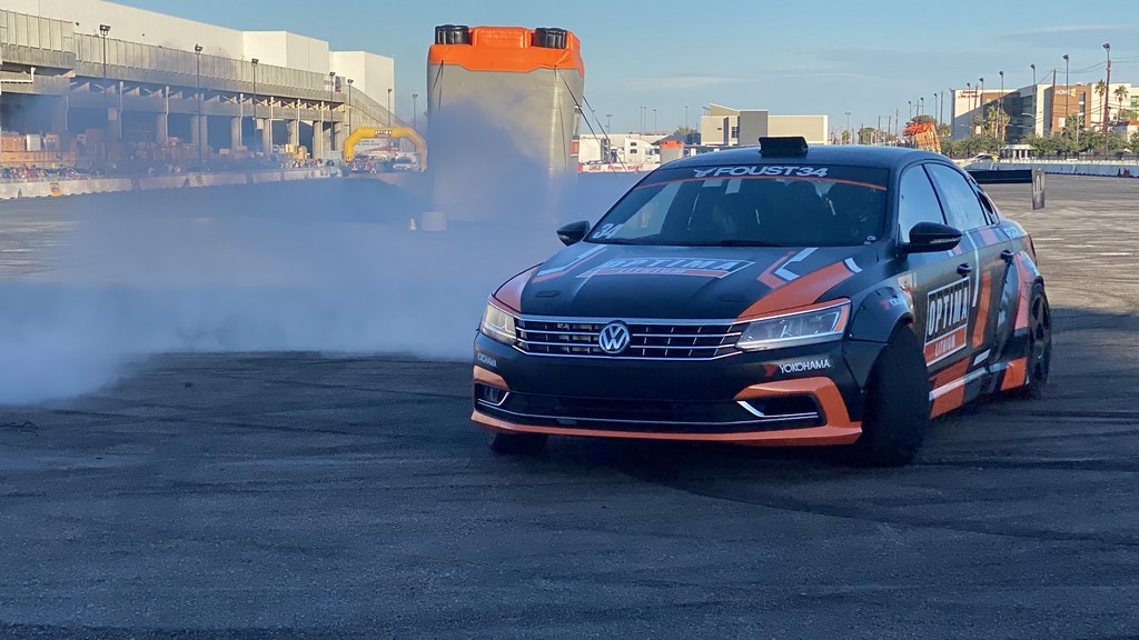In the Bronze lot of South Hall, three out of five segments of the OPTIMA Ultimate Street Car Invitational (OUSCI) took place, including a new-to SEMA Autocross challenge along with a display of all of the OPTIMA challenge vehicles in competition.