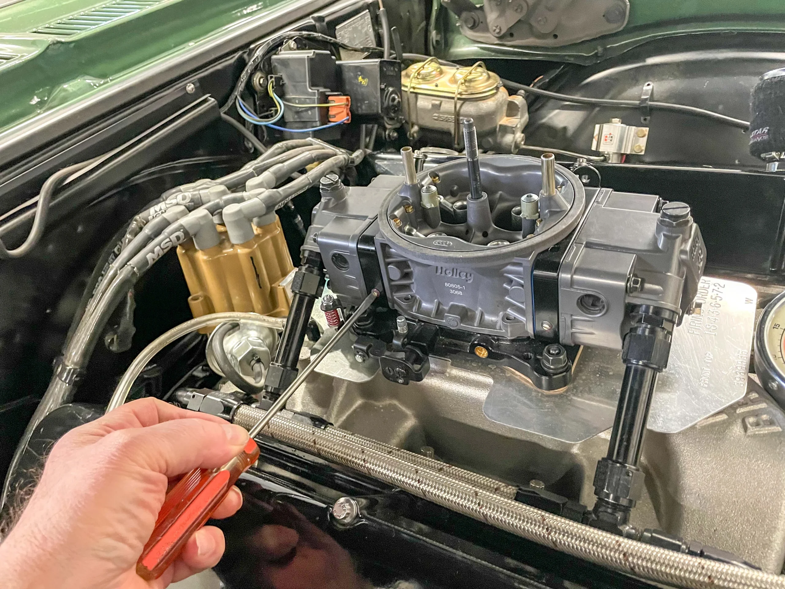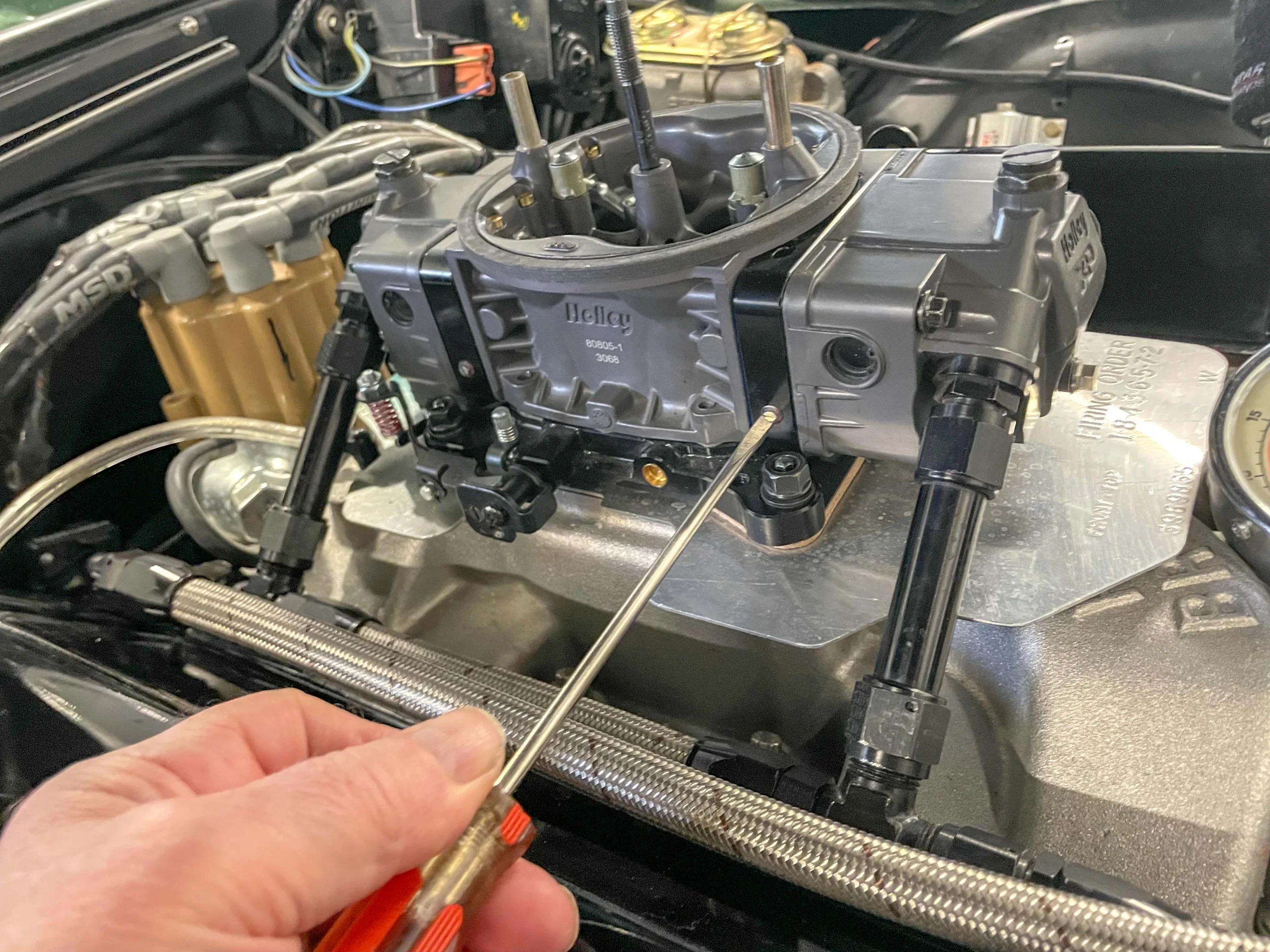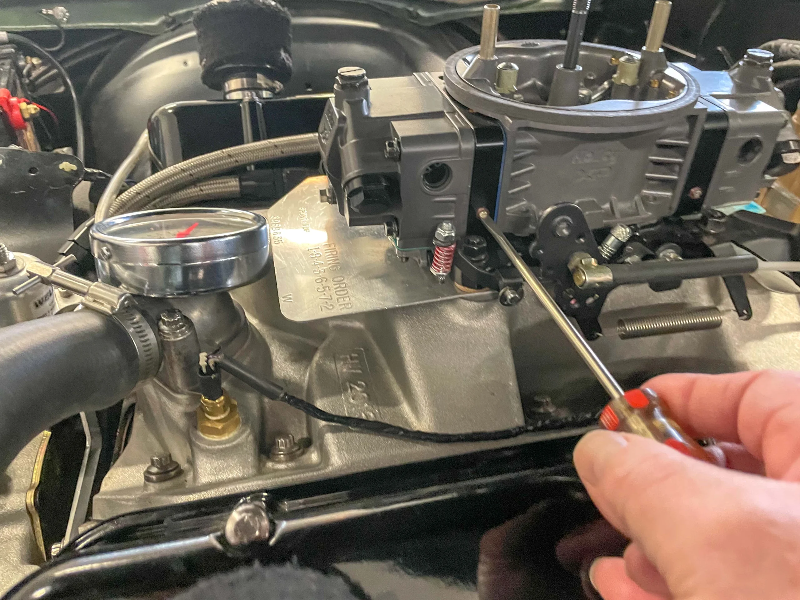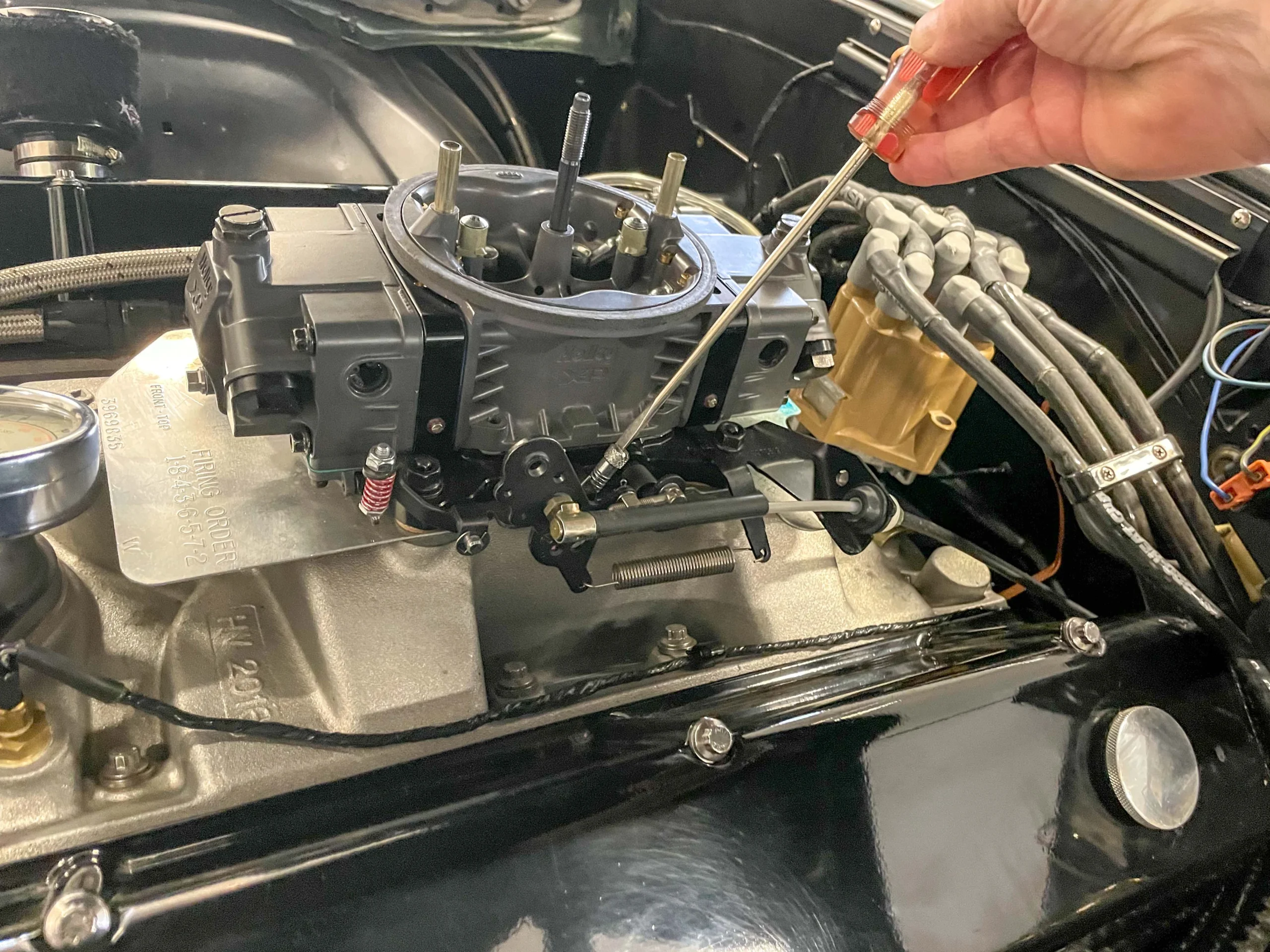 When setting idle mixture in a carburetor, common practice is to use a vacuum gauge as a setting “tool”. Typically, most folks set one mixture screw to the highest vacuum reading, then set the opposite mixture screw (and if it has four corner idle, repeat here too) and finally enrichen the mixture on each screw a very slight amount. Usually, this process results in a slightly higher idle speed, so you’ll have to adjust the idle speed screw to compensate.