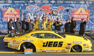 Force, on the opposite side of the ladder to Prock, defeated Buddy Hull in Jim Dunn Racing’s Dodge Charger, Blake Alexander, driving Jim Head’s Ford Mustang and Kalitta Motorsports’ J.R. Todd’s Toyota GR Supra to race Prock’s Camaro in the finals. Force also prevailed Saturday afternoon in the Mission #2Fast2Tasty NHRA Challenge, the double-up hoisting the veteran to second in points, just 22 behind Prock. Former leader Matt Hagan’s Tony Stewart Racing Dodge Charger SRT Hellcat lost in the first round to Ron Capps’ Toyota GR Supra and fell to third place.