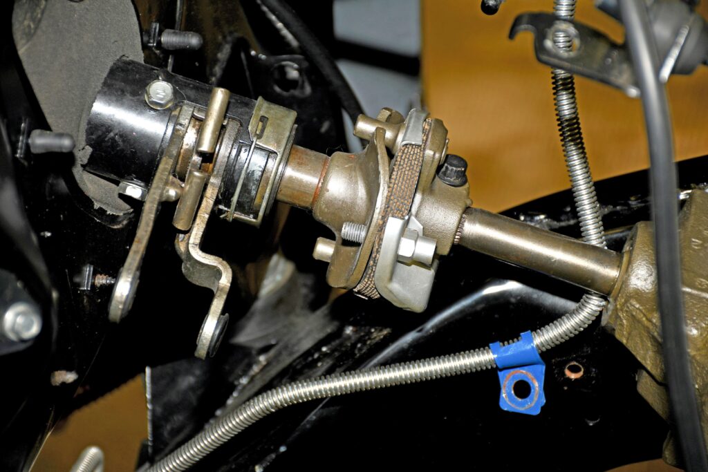 Because of that, I went to a local machinist. He dragged a file across the linkage and quickly came to the conclusion that the steel was actually hardened (and not so much by me). Next up he annealed it with a TIG welder. Once it cooled, the column shaft was clamped into the vise of a Bridgeport mill. The end result (following several attempts – all with more annealing) was a small dent in the hardened shift lever using a 1/8-inch bit. That “dent” measured approximately 0.010-inch deep. It wasn’t looking good.
