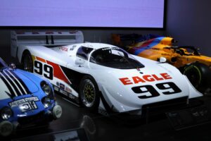 A standout feature of the exhibit is the collection of renowned race cars, including the 1946 Kurtis-Miller Ross Page Special, the 1968 AAR Eagle 68 driven by Denny Hulme, and the 2018 McLaren MCL33. Visitors will also see the 1966 Lola T70 MKII Spyder and the legendary 1993 AAR Toyota Eagle MKIII, which dominated the IMSA series with 21 wins in 27 races. The 1913 Mercer Type 35-J Raceabout, recognized as one of America’s earliest sports cars, further enriches the display.