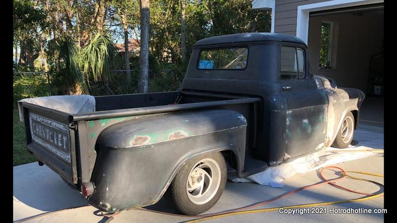 Fast forward to 2016 and Jeff was about to get to work on this cool stepside pickup. Jeff did all the work on this truck, and was quick to point out that he also learned much from watching YouTube videos! The truck is an all steel 57 Chevy 3100 series Stepside 1/2 ton Shortbed. Jeff added an S-10 blazer front clip (so he could enjoy power steering and brakes!) to get things started. Next up was a .40 over 350 with a TH400 3 speed auto trans that again, Jeff built. The transmission has a 2500 TCI stahl converter transferring the horsepower thru an aluminum balanced driveshaft to the Dana 44 rear end out of a Jeep Wrangler with 3:07 gears.