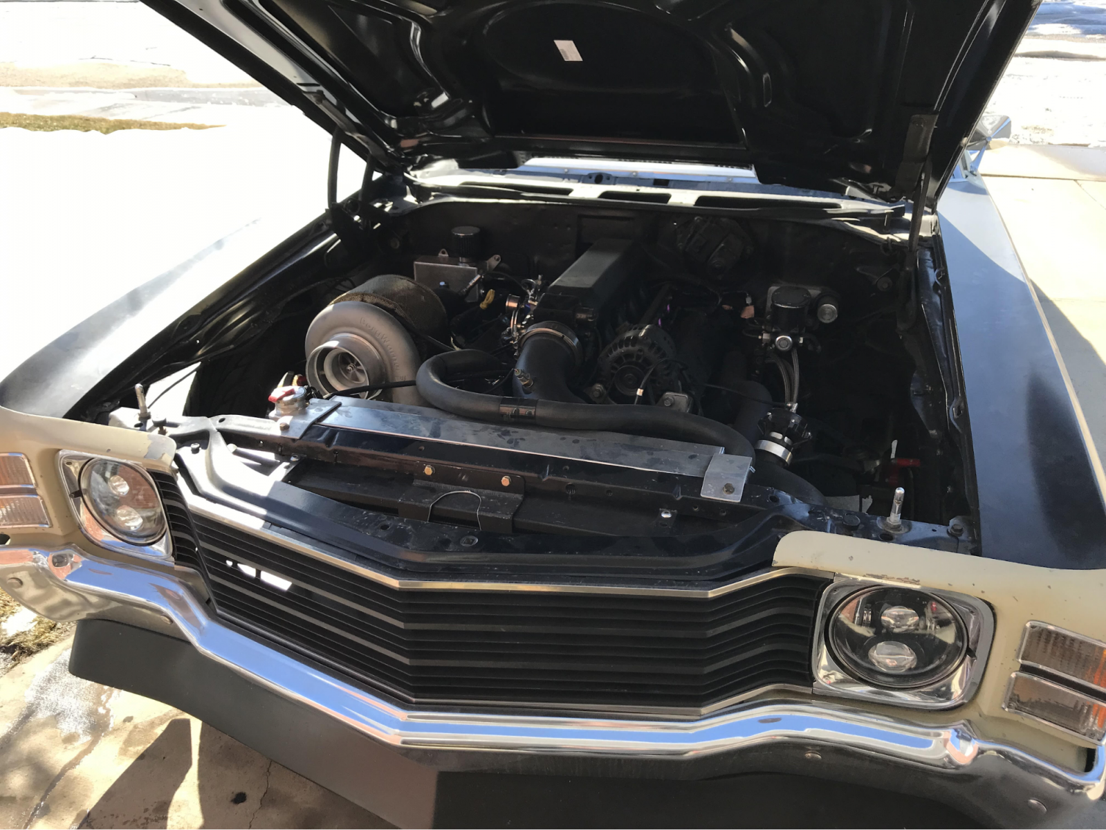 Fidgety and cold, he started installing a new motor the following winter. A basic, modern motor with a few upgrades kept him content; a 2003 Chevrolet 6.0l. LQ4 with Hooker Super Comp LT headers with a harness modified by Wait4Me Performance. A massive bay made it easy to add in a four-core radiator with a Lincoln Mark VIII cooling fan.