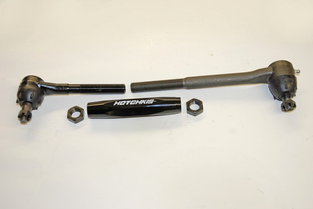 For tie rod ends, source new inners and outers; they too are readily available from Classic Industries). To join them, Classic Industries suggested solid tie rod sleeves from the folks at Hotchkiss. The setup from Hotchkiss includes machined hex bodies (so you can easily turn them to adjust toe with a basic open-end wrench) and matching jam nuts. They’re powder coated gloss black too. Installation for the tie rod ends and the Hotchkiss tie rod sleeves are exactly the same as stock too. See the photos for a better look.