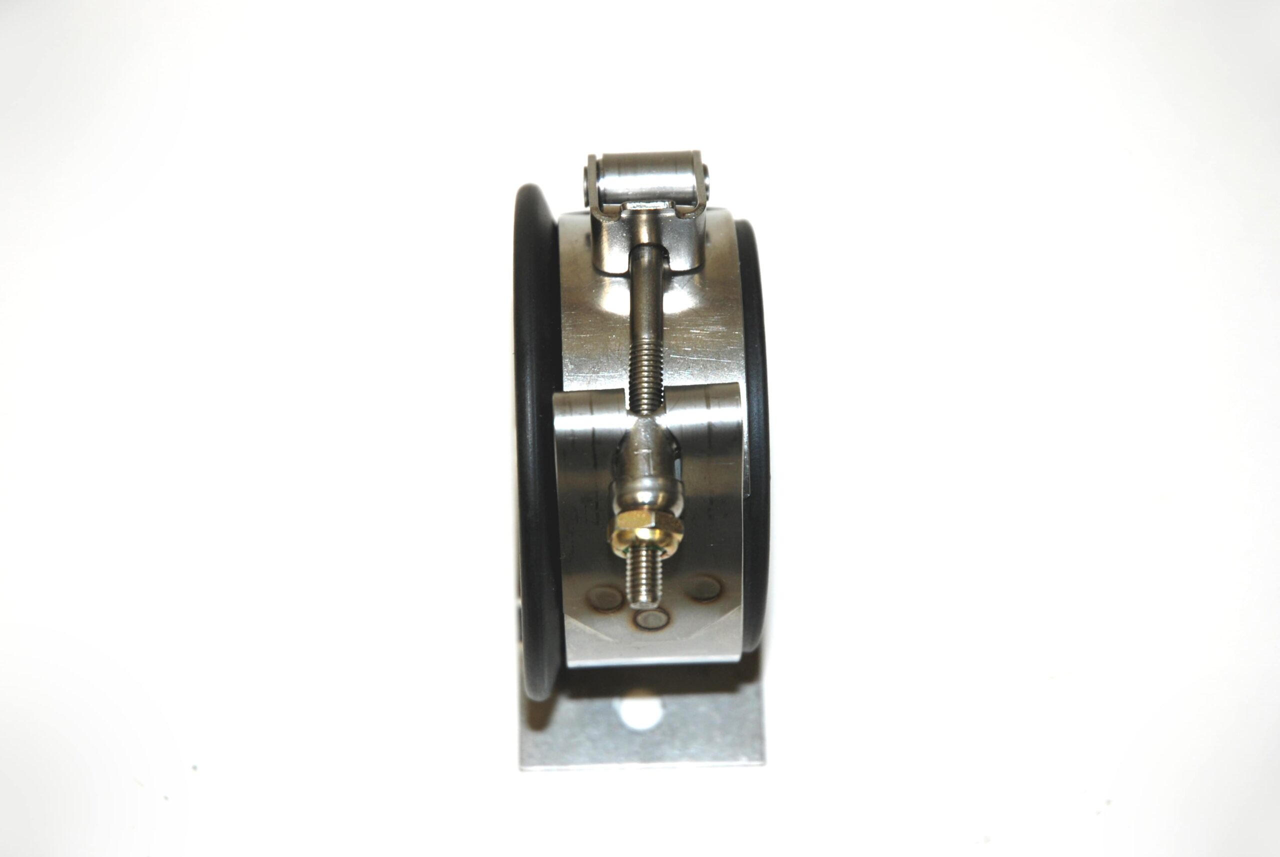 Aircraft Spruce sells a mounting bracket for Weldon aircraft fuel pumps (Aircraft Spruce part number 05-00021). It’s a T-bolt configuration complete with a mounting bracket. It’s manufactured from stainless steel and is engineered to withstand considerable vibration. The quick release T-bolt is setup to rotate within the mount bracket so that you can access the quick release in any number of mount locations. Bottom line? It’s perfect as an automotive fuel filter mount (or for a mount for any other similarly sized cylindrical component – obviously it can be used for some fuel pumps too).