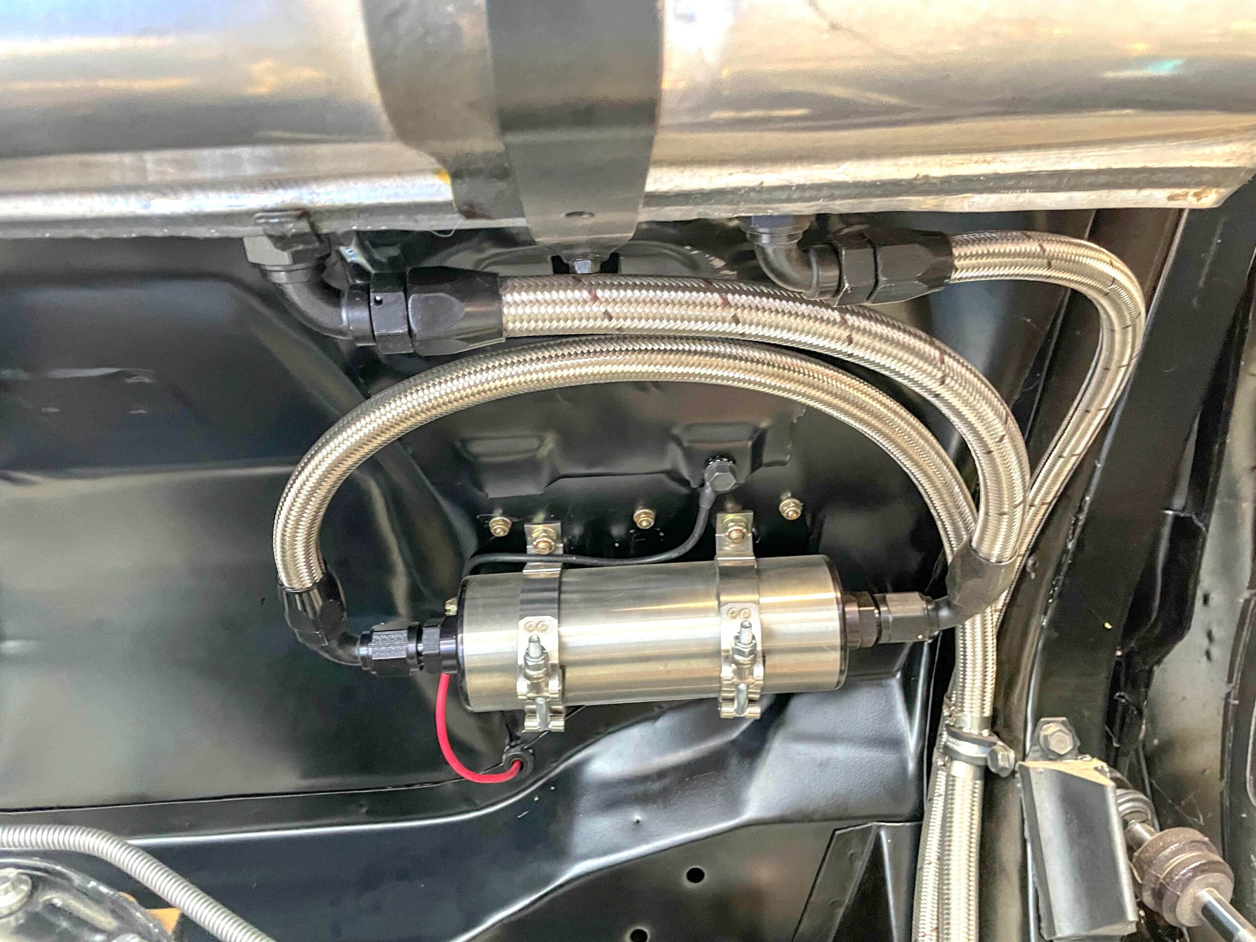 None-the-less, either use a partial hose/hose end combination or a basic hose end fitting mounted on each of the pump’s inlet, outlet and bypass ports when you dummy it up. In my case, I figure out how much room the pump with hose attached requires, and then I mark the car for eventual placement. Simultaneously, I figure out where the filter(s) mounts. I use the same strategy of adding the appropriate hose and hose ends to the mix before I nail down a mounting point.