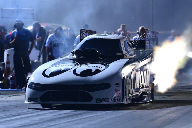 When John Force took his PEAK Chevrolet Camaro SS to the Funny Car Winner’s Circle in Topeka last weekend, extending his national event win number to 154, the 16-time champ assumed the No. 1 position in the points standings – but he still hasn’t qualified for the Countdown. The racer in second place, Ron Capps, is only 29 points behind his career-long rival yet has qualified for the playoffs, driving DSR’s NAPA Auto Parts Dodge Charger SRT Hellcat. Similarly, runner-up in Topeka J.R. Todd is in third place, -38 points to Force in his Kalitta Motorsports DHL Toyota Camry, but still out of the Countdown-qualified, while fourth-placed Bob Tasca III in his Ford Mustang has qualified, 50 points behind Force.