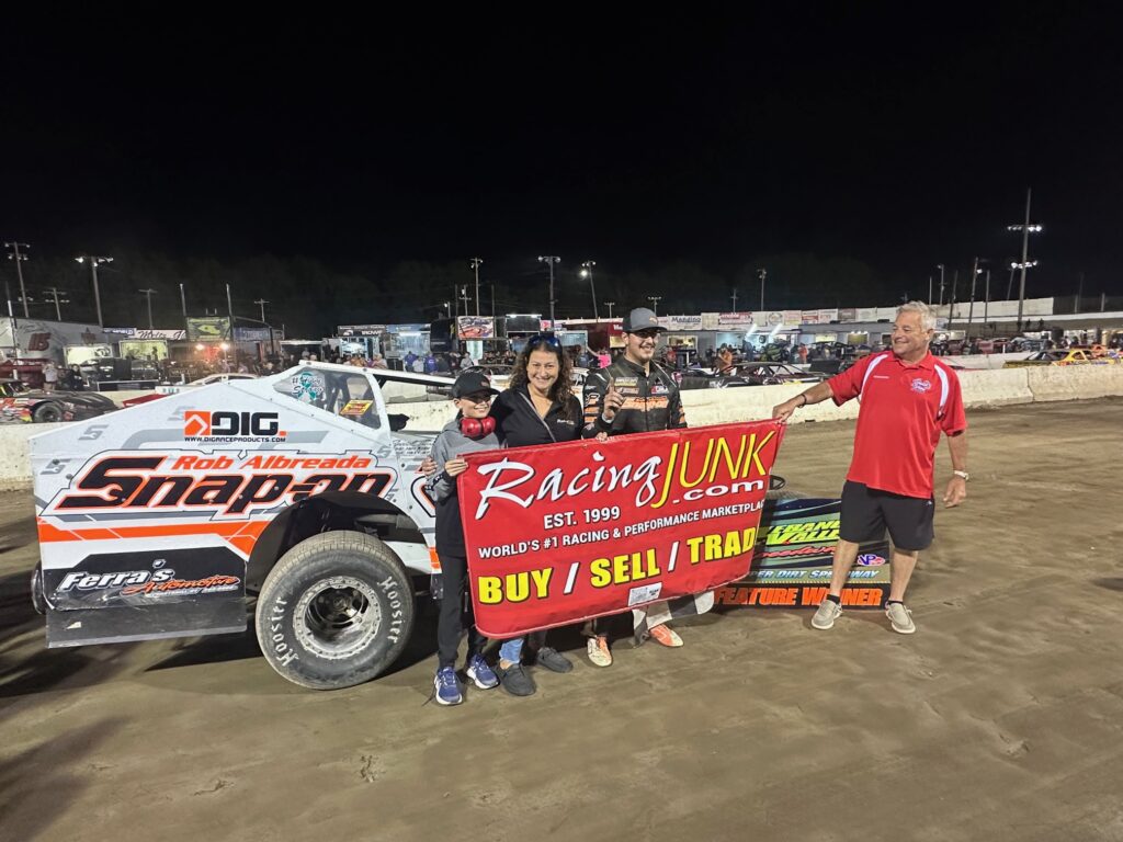 Lebanon Valley was Bobby’s home track, a place where he’d spent time cheering from the stands, advocating for the sport and the community, promoting events and more. 31 cars entered the challenge, and Massachusetts local Frank Twing took home the victory (his second in a row for The Old Buzzard 30), accepting a check with Bobby’s face on it, created by DH Graphix. RacingJunk would like to thank everyone involved in honoring Bobby for this race, including: Cheryl Catman and Frank McKay at the NYSSCA, Jann Ivancic-McGaffin of RaceProWeekly, Scott Stetz at RacingJunk and everyone at Lebanon Valley Speedway. Multiple members of the race community also contributed to the prizes for the race to honor both Bobby and Jimmy Langenback including Danny and Daniel Sanchez, DH Graphix, Robitaille Racing 03