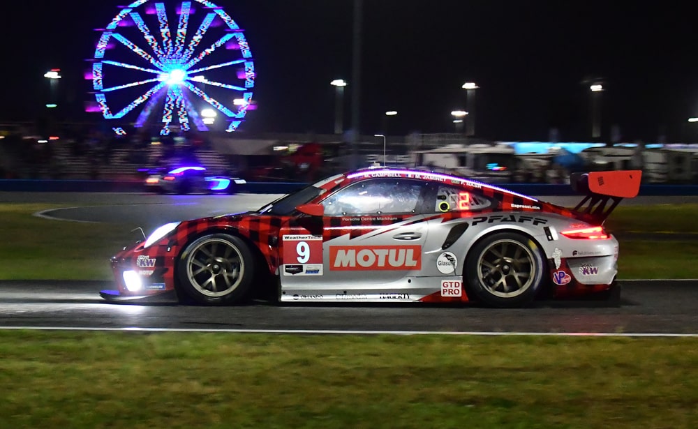 The most heavily-populated class, GTD had 22 entries for this race, but none of them could keep up with the bright blue Wright Motorsports Porsche 911 GT3R of extremely experienced endurance racers Ryan Hardwick, Zachary Robichon, Jan Heylen and Richard Lietz. To understand how competitive this class was at Daytona, the top four runners were all on the same, 707th lap at the close of a day of racing. In fact, the second-placed Aston Martin Vantage GT3 of John Potter, Andy Lally, Spencer Pumpelly and Jonathan Adam was less than 15 seconds behind the leader.