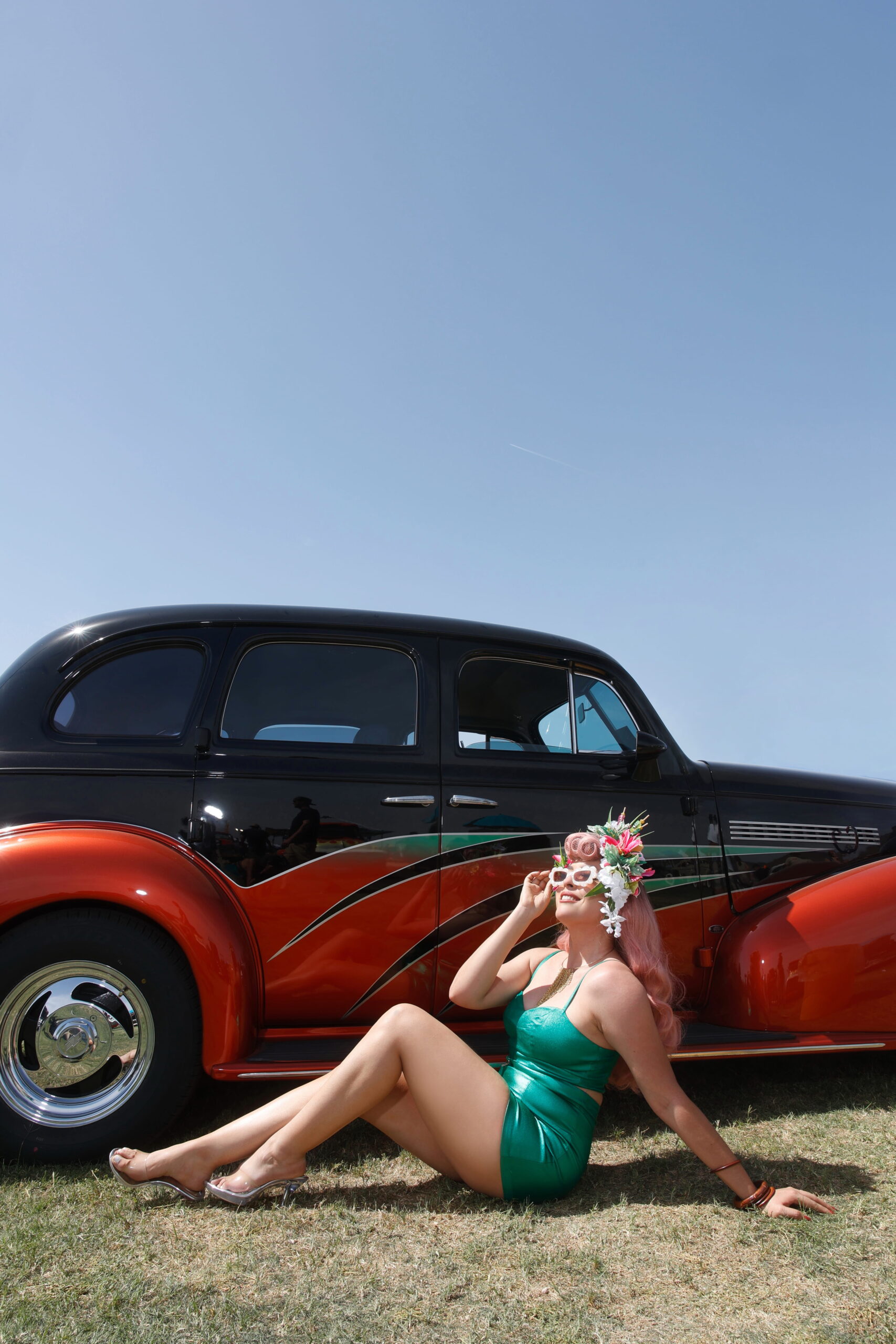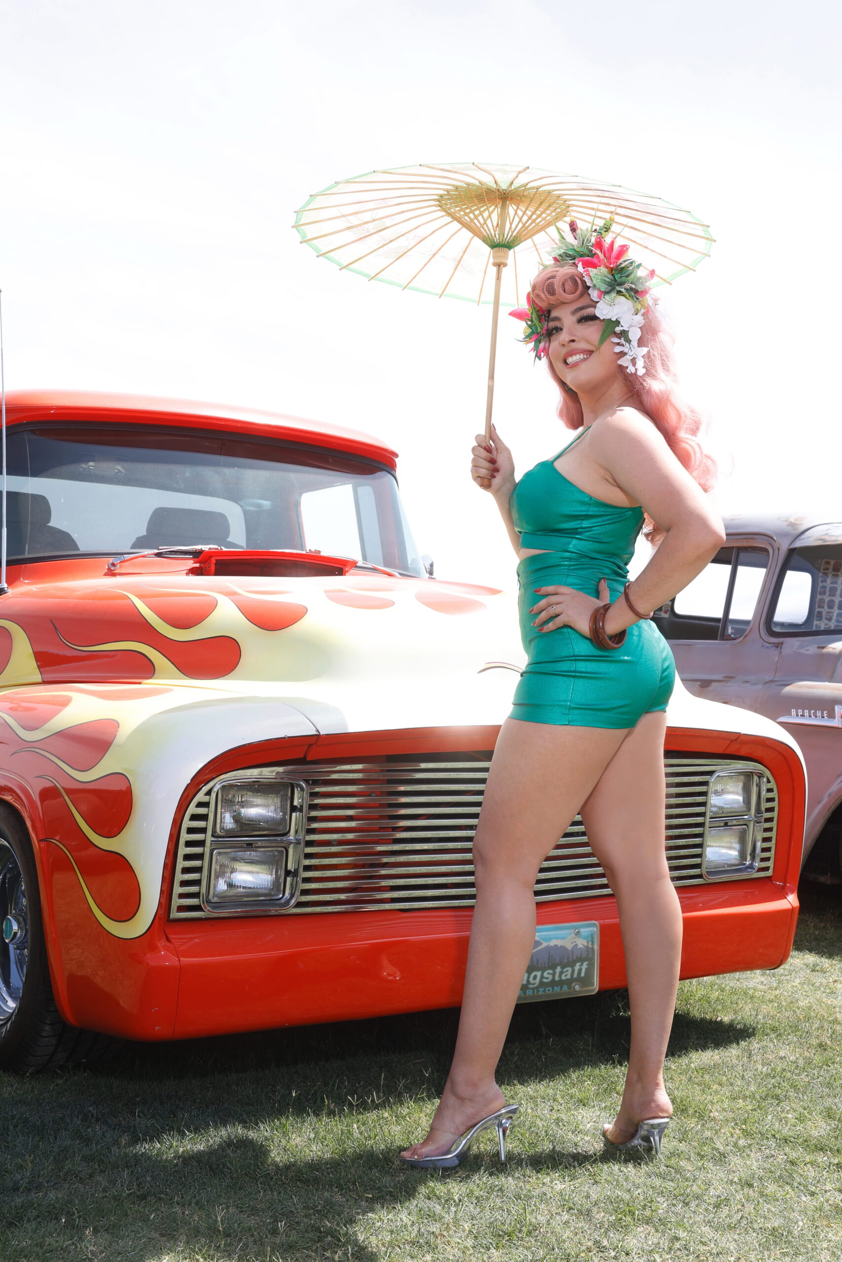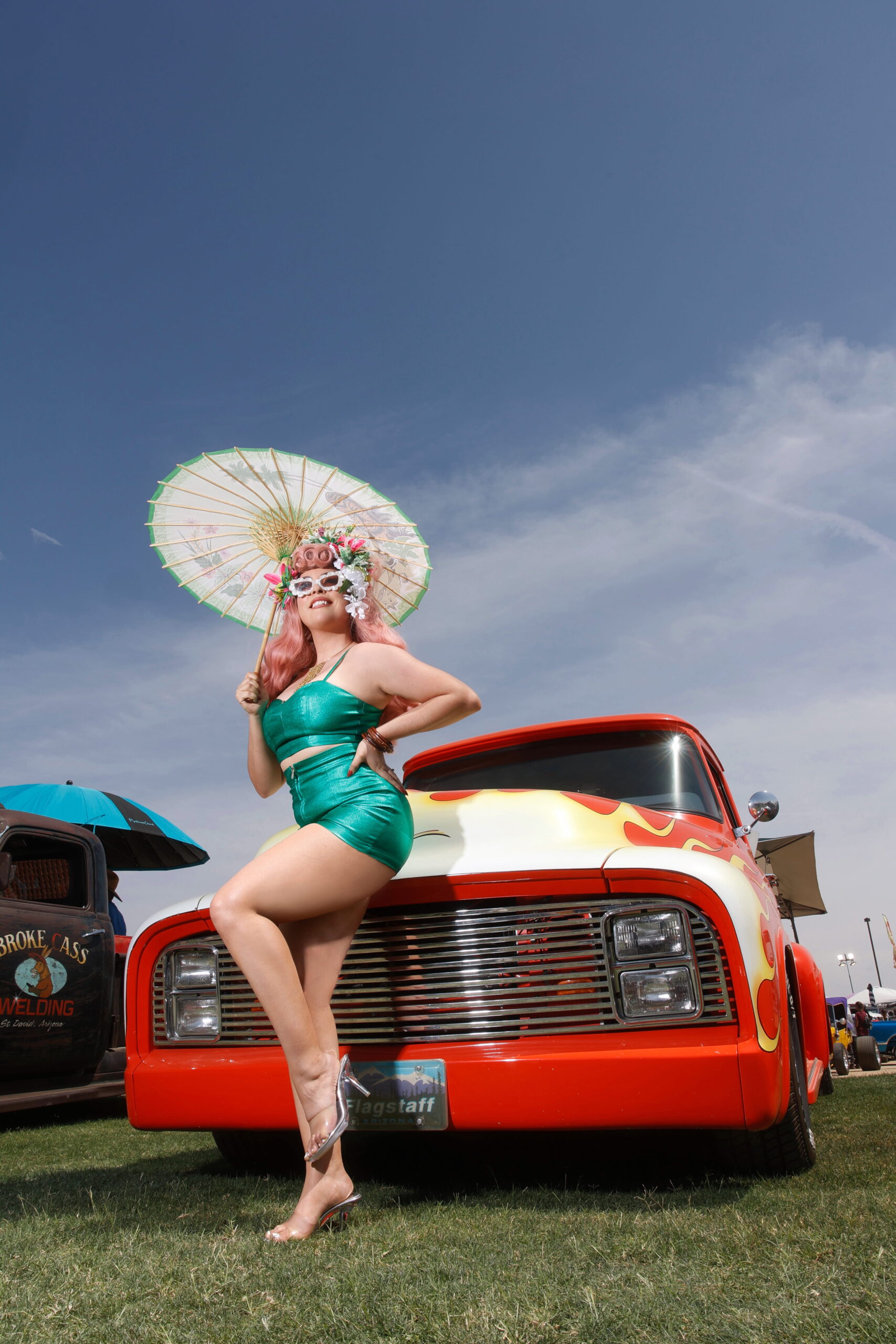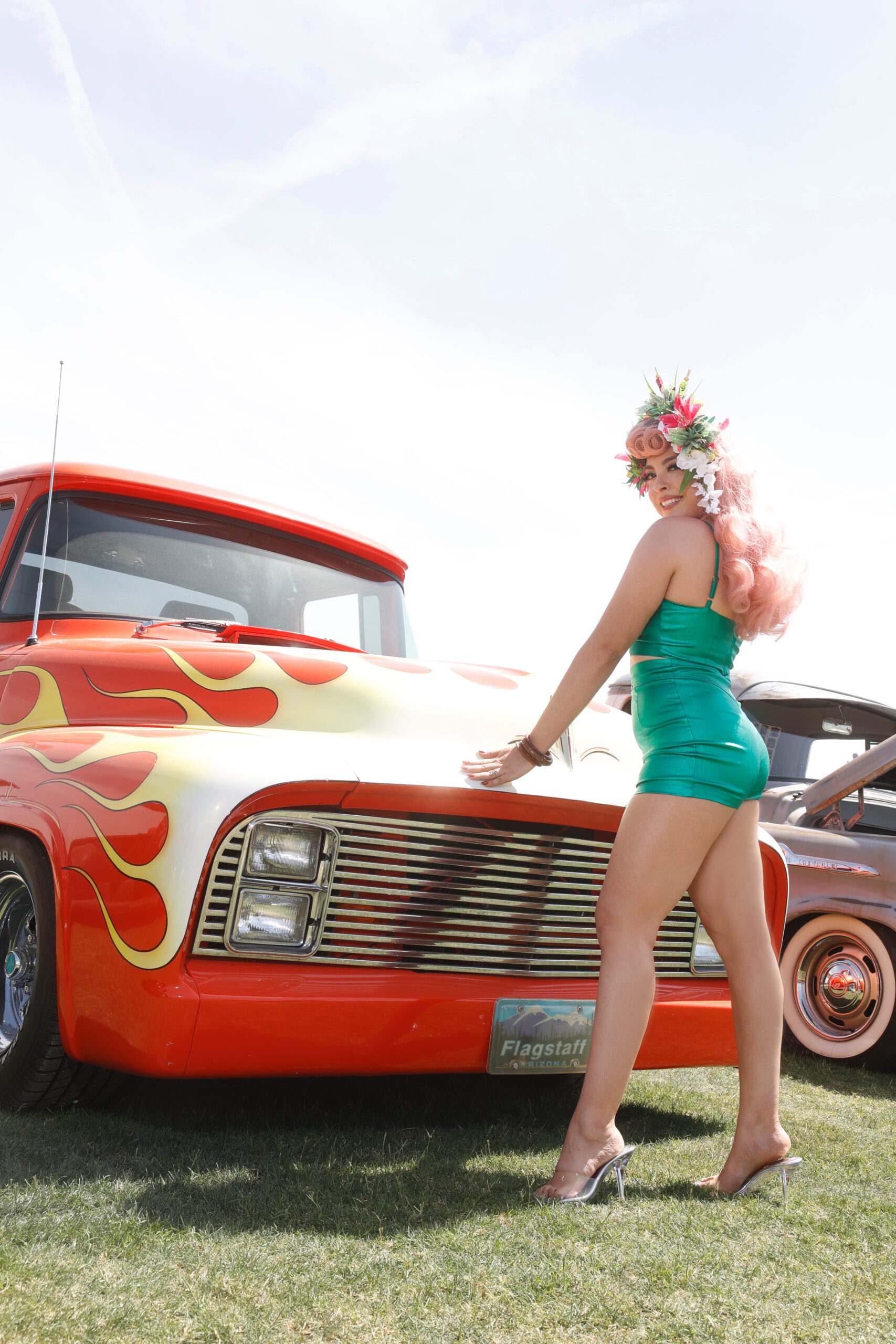 This week's Motor Maven is Miss Luna Antigua, who describes herself this way: "Sun scorched Arizona vixen that keeps a pet alien at her side. She cruises the cosmos anywhere from Earth to Venus in her vintage spaceship, leaving a trail of stardust, lipstick kisses, and trouble wherever she lands." Sounds like fun! We wonder what kind of hot rods they have in space!