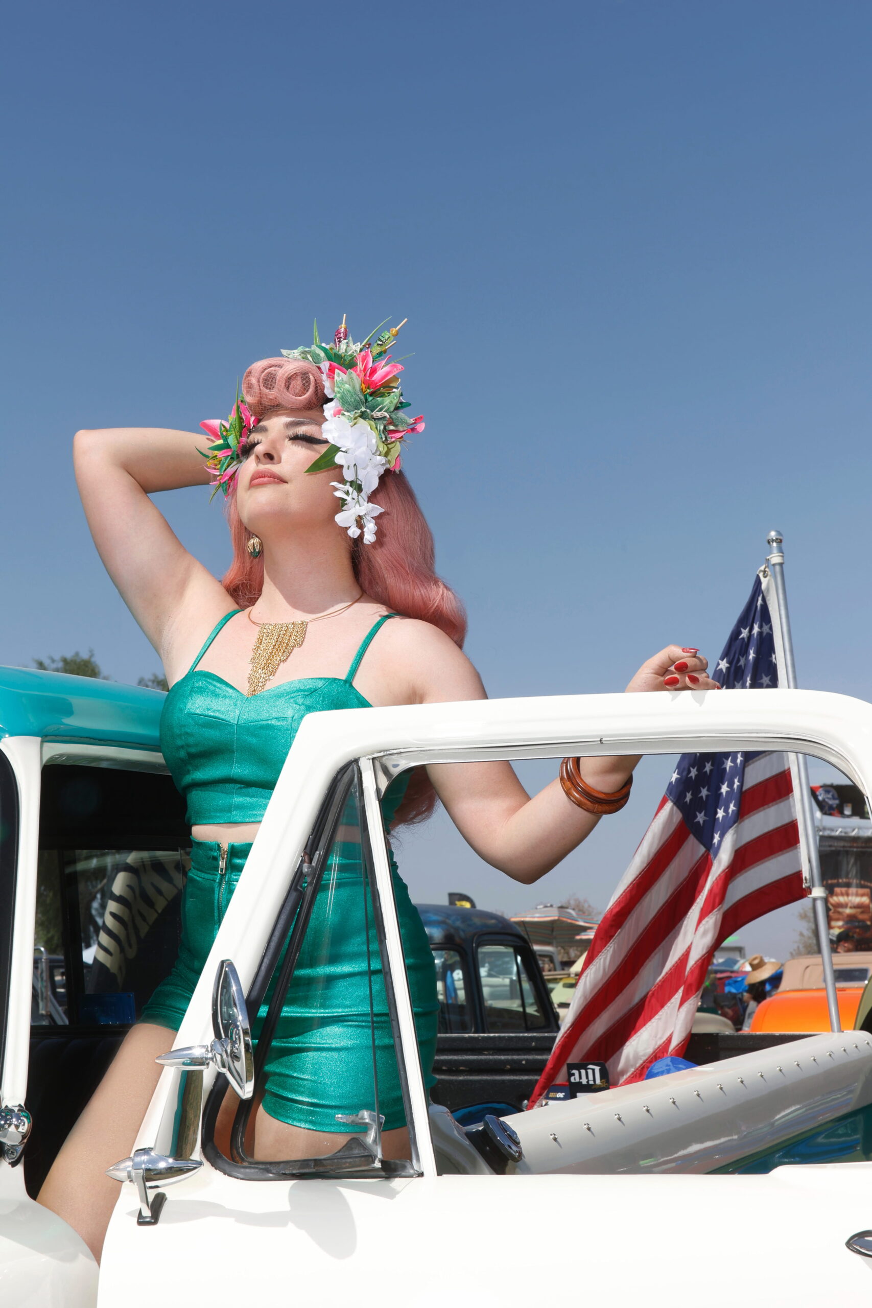 Miss Luna Antigua is out of this world, representing Mitzi's Motor Mavens in the universe.