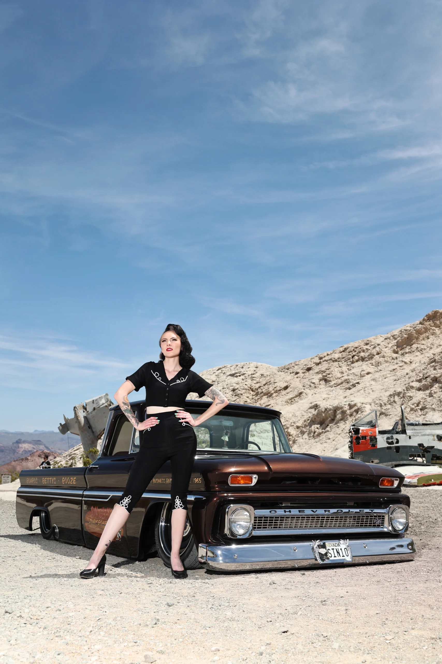 I’m a model and cosmetologist based in Las Vegas, NV. I love doing mens hair and vintage hair styling. I am an artist at heart and am always looking for new avenues to show my creativity. This year at Viva Las Vegas I had the pleasure to shoot with Mitzi once again. As per usual the Saturday car show was super hot, luckily I’m a local and I wasn’t too phased by the heat. Viva Las Vegas was so much fun seeing so many bands live and visiting with so many people around the world I’ve met. Following Viva Las Vegas I went to Nelson’s Landing with Mitzi. Nelson’s landing is such a cool spot, if you haven’t had a chance to explore it yet make sure you do! There’s a lot of classic cars and old buildings to check out at this ghost town just a short drive away from lake mead. This weekend was so much fun, I hope to meet some of you next year at Viva Las Vegas.