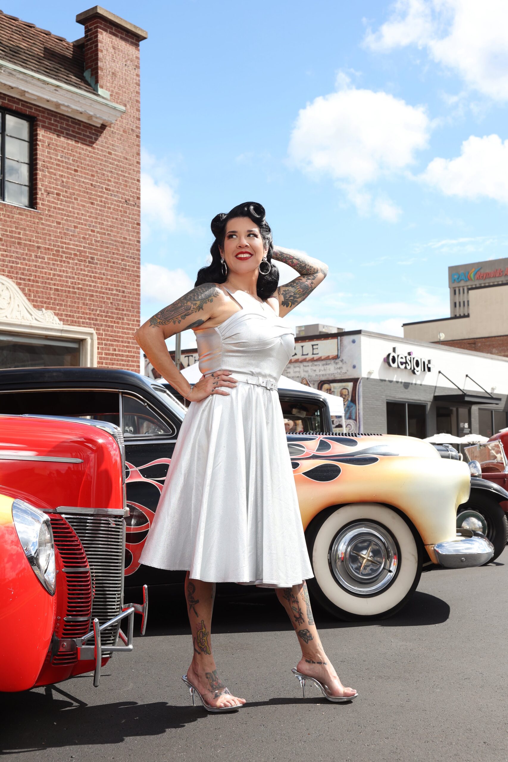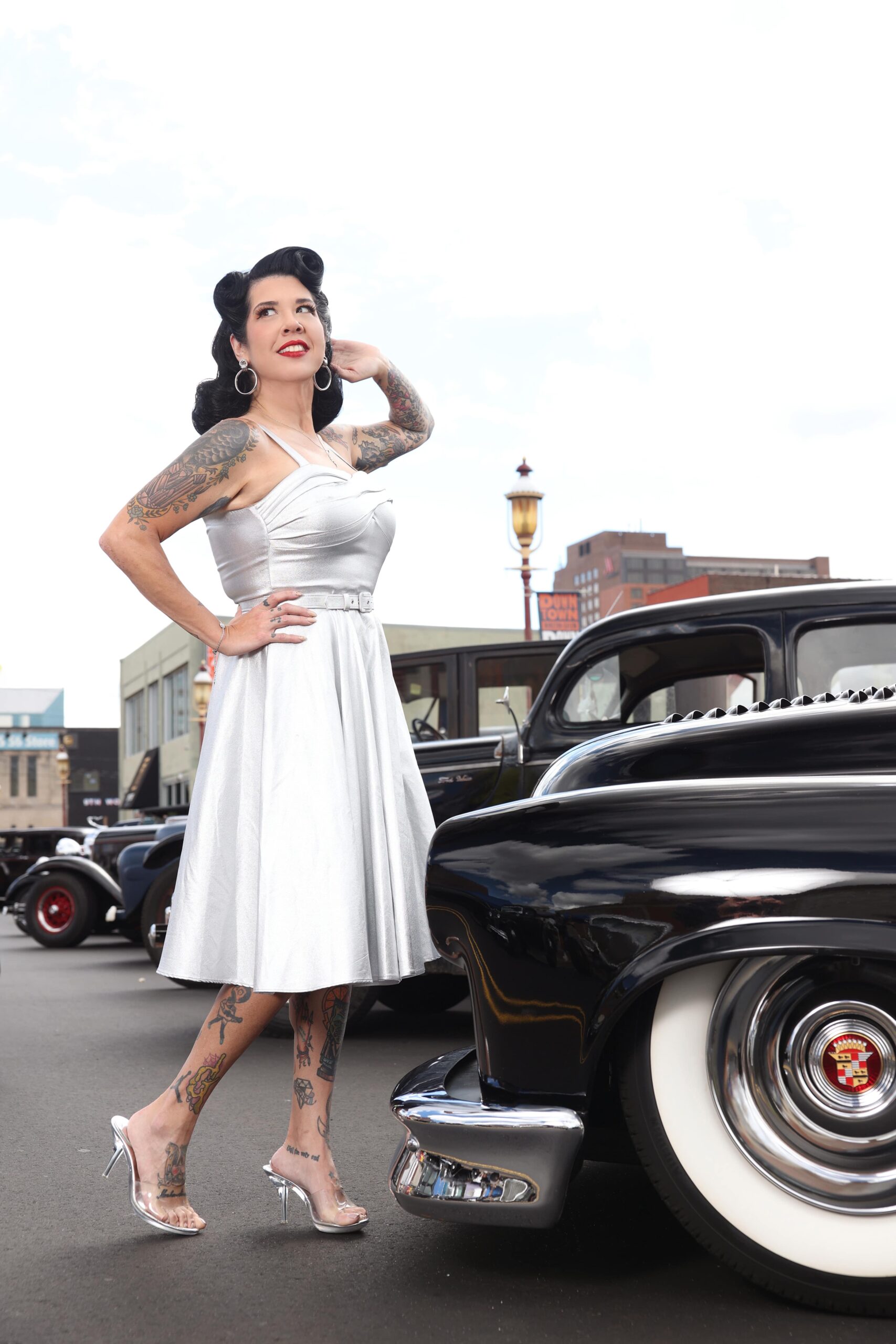 I’m a Florida born and raised pinup originally from Orlando and have been doing pinup for about 2 years. I’m an old school rockabilly and that’s how I got into pinup. My pinup name “Holly Peña” was inspired by my southern and Mexican American roots as a play on the word “jalapeño.” My favorite cars are 50’s Cadillac hearses and lowriders. I’m a sucker for mariachi bands and pretty much any Wild Records band. I love all things tiki and Universal Monsters-related. By day I’m a pharmacy tech at a hospital transplant pharmacy, currently back in school to become a PA. I also ride a Harley Sportster 883. Click Here to Begin Slideshow