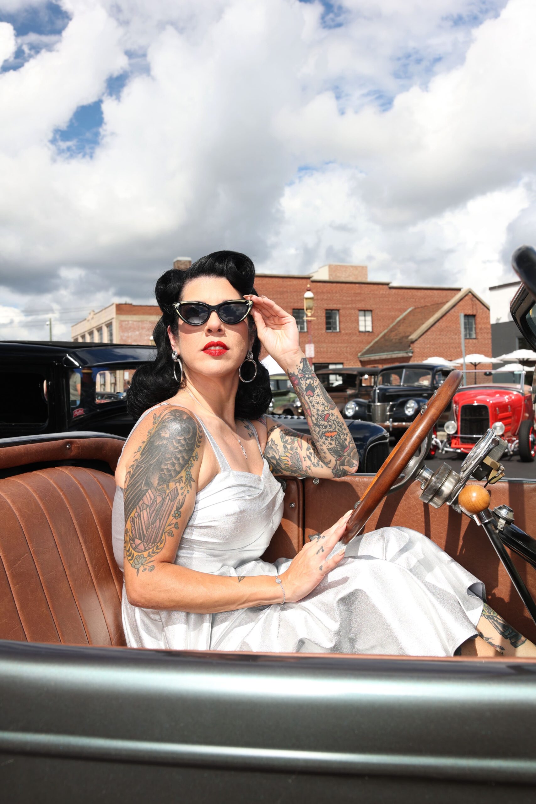 I’m a Florida born and raised pinup originally from Orlando and have been doing pinup for about 2 years. I’m an old school rockabilly and that’s how I got into pinup. My pinup name “Holly Peña” was inspired by my southern and Mexican American roots as a play on the word “jalapeño.” My favorite cars are 50’s Cadillac hearses and lowriders. I’m a sucker for mariachi bands and pretty much any Wild Records band. I love all things tiki and Universal Monsters-related. By day I’m a pharmacy tech at a hospital transplant pharmacy, currently back in school to become a PA. I also ride a Harley Sportster 883.