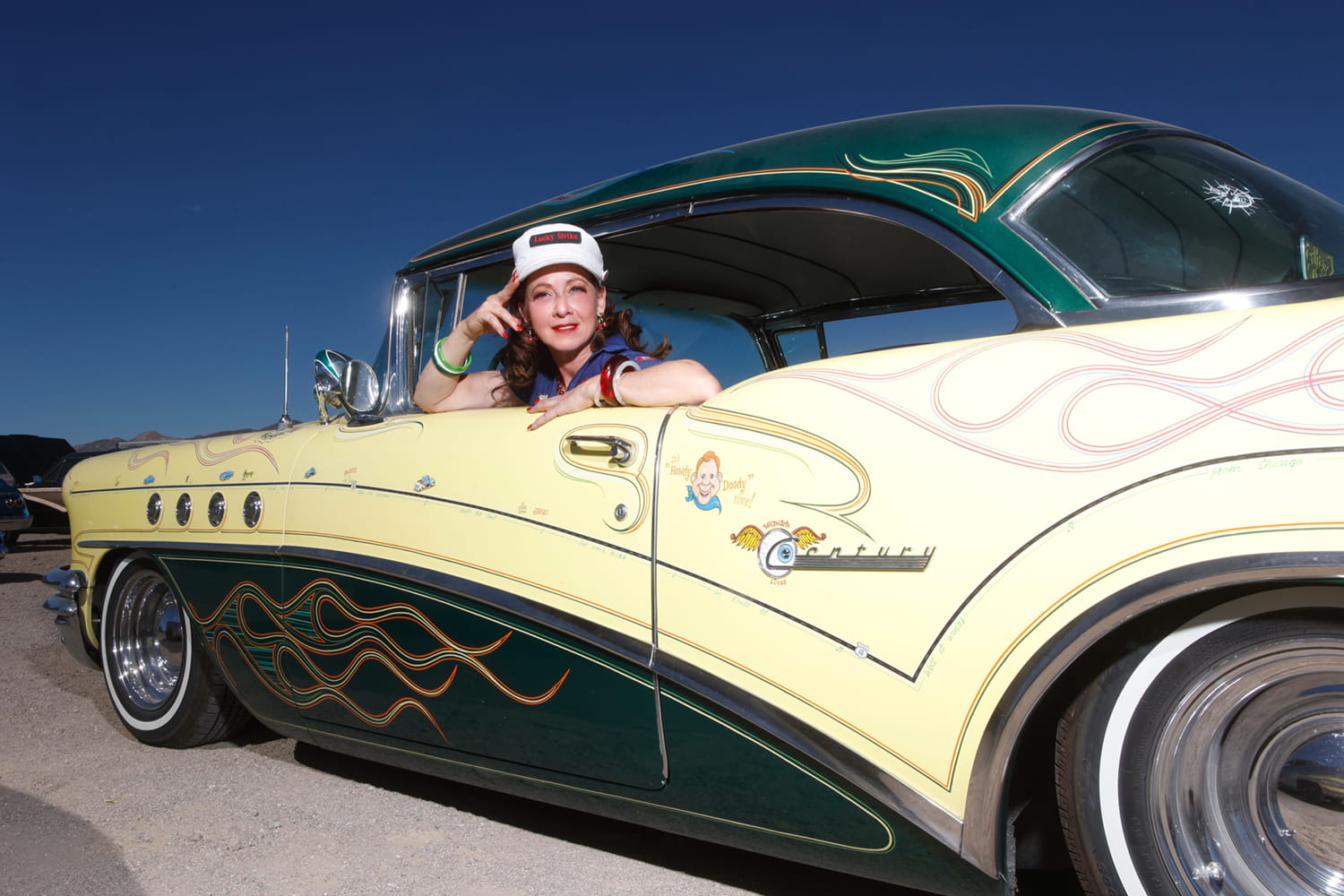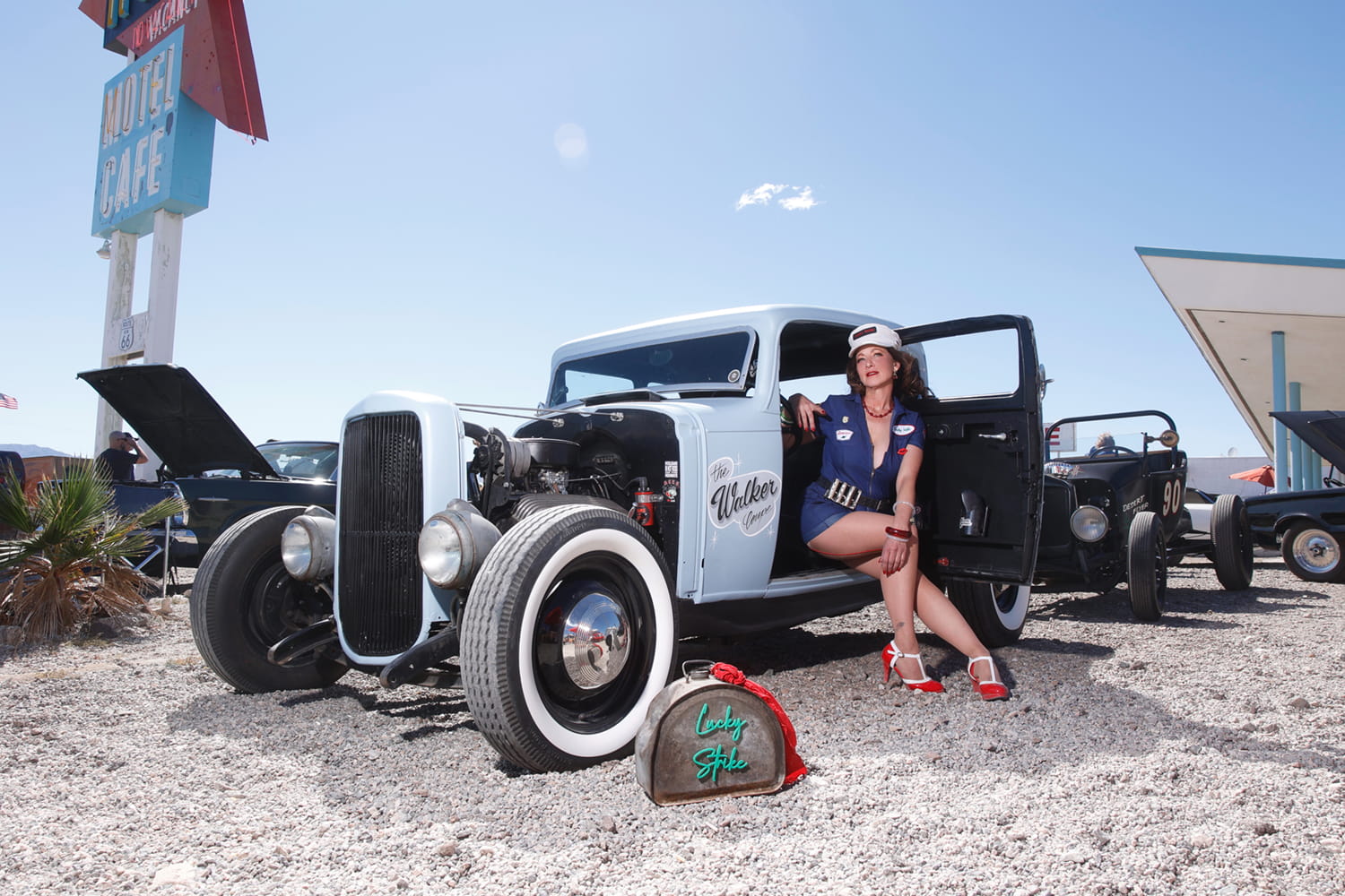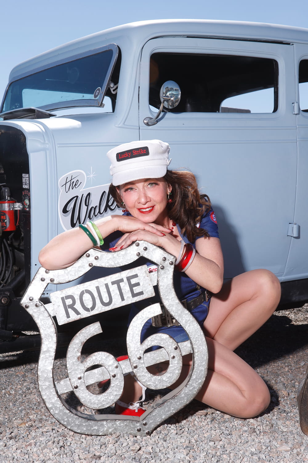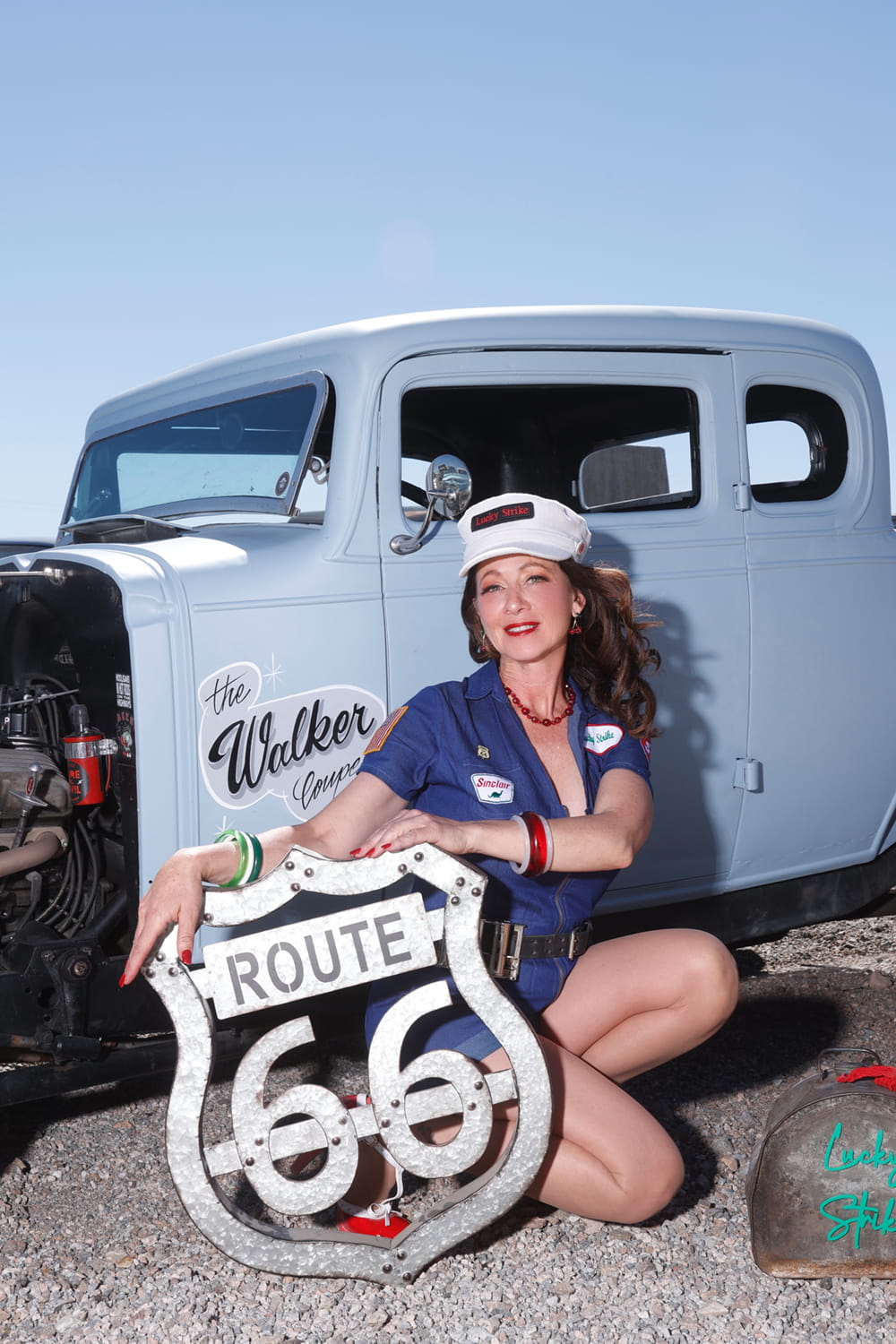 Lucky Strike is just as comfortable polishing the chrome on vintage vehicles as she is stepping out in a pair of sky-high heels.