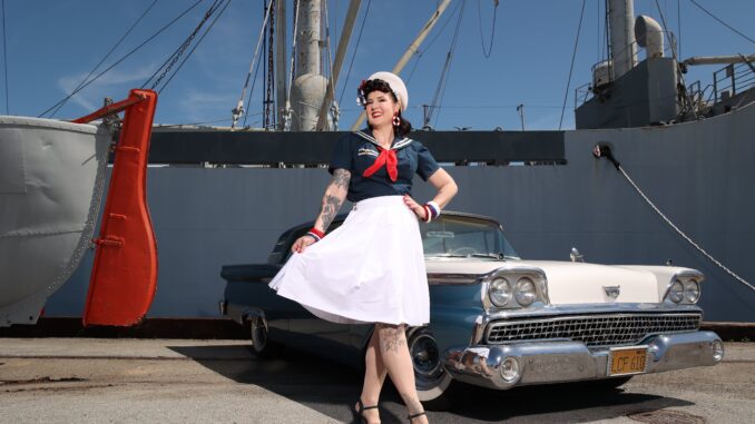 Kacie Sunshine hails from Los Angeles and now lives in Orlando, FL, bringing that coast to coast sunshine to the pinup scene! She was raised on a former WWII battlefield and developed a passion for 1940s and mid century history from an early age. She’s a vintage fashion enthusiast and avid swing dancer. Beyond the glitz and glamour, Kacie is a passionate mental health advocate, using her voice to remind others that strength and resilience never go out of style. Click Here to Begin Slideshow