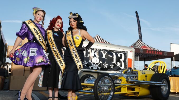The In N Out Dragstrip in Pomona hosted the Mooneyes Xmas Show and Drag, including the Miss Mooneyes Pinup Contest