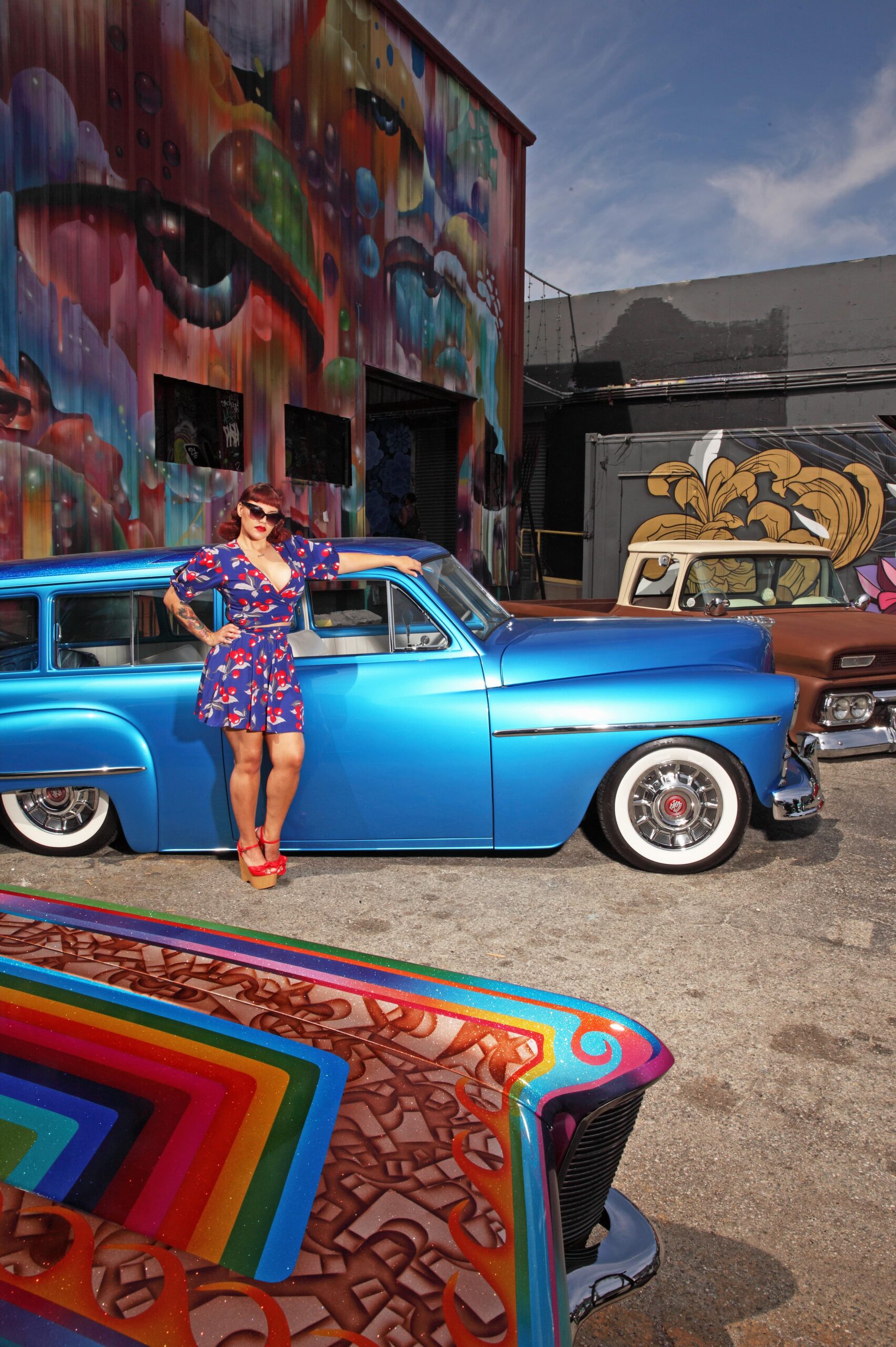 Mitzi is a beautiful lady no doubt most likely just as charming. Is she a car buff or just doing a photo shoot??