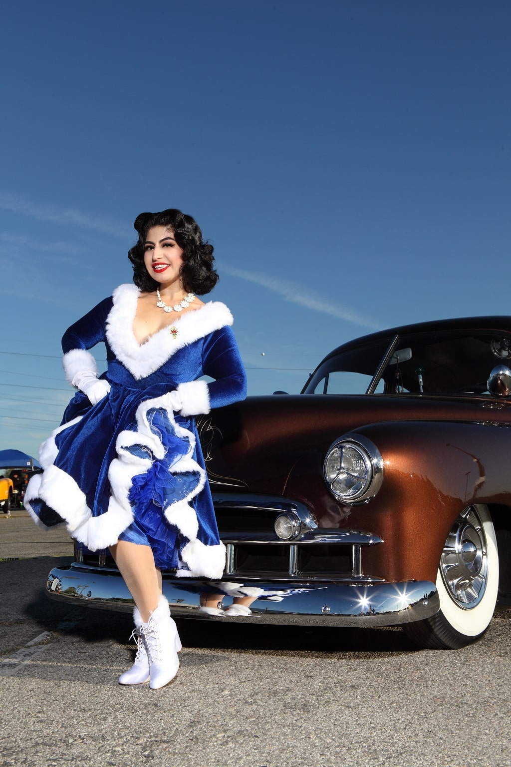 Click Here to Begin Slideshow Hot rod and pinup photographer Mitzi Valenzuela is known for having her finger on the pulse of both classic and rockabilly car culture. As part of that, Mitzi produces pinup contests for shows all over the world. Here she shares photos of the competitors and some super sweet rides. Here are a few words from Miss Dee Dee Cupcake, today's featured pinup model and winner of Miss Mooneyes 2018: "Winning Miss Mooneyes 2018 was a dream come true and an amazing honor. I knew that the Mooneyes Christmas show was a Southern California tradition, and that Mitzi’s contests always had the coolest custom trophies! "Mooneyes is one of the best car shows in SoCal and has an intimate vibe despite being a large event. The cars were amazing! I spent quite a bit of time putting my overall look together and making sure every detail of my outfit was perfect. My strategy was to believe in myself, enjoy the moment and have fun on stage, because as my mother said, 'It will be over before you know it.' "I will never forget how I felt the moment my number was called as this year’s Miss Mooneyes; all of the ladies were amazing, so I was truly shocked. I received an incredible amount of support from the moment I was a finalist until the stage, and I believe that played a huge part in my win. Winning Miss Mooneyes is definitely one of the highlights of my pinup career, and I am very grateful for this opportunity."