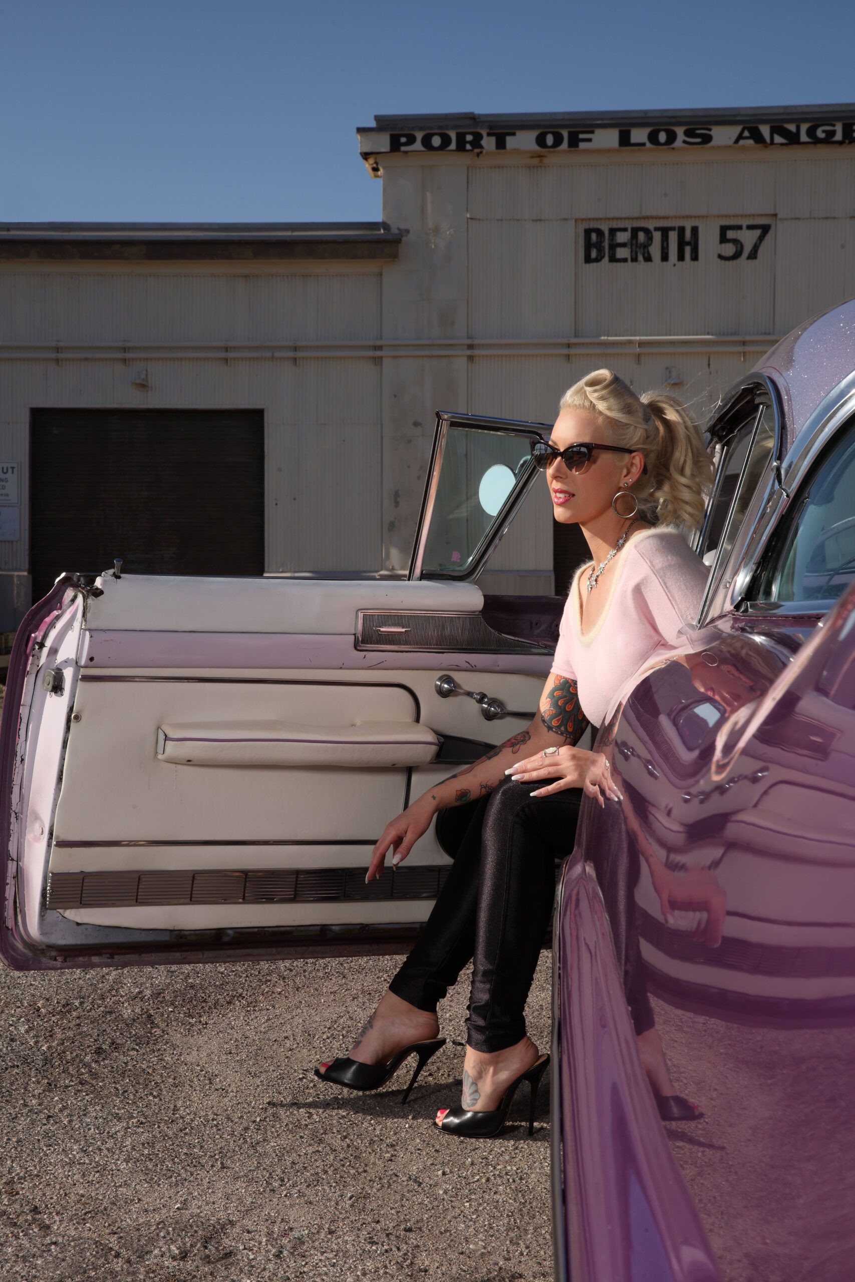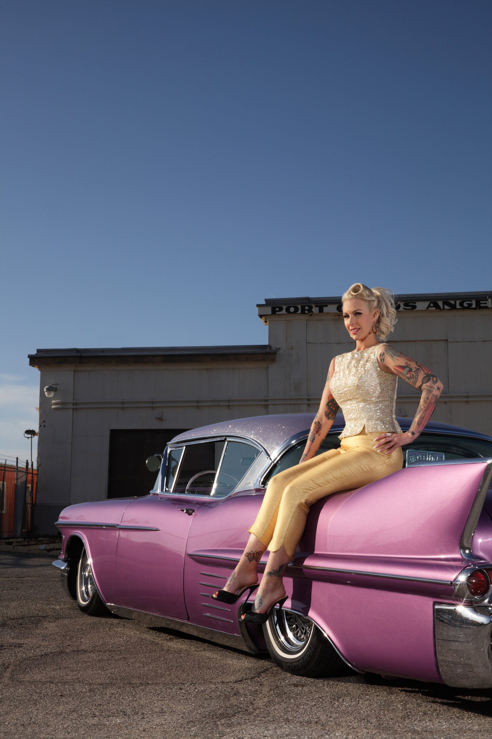 Julie Mullins aka “ Platinum Pomp” (a nick name given her as a young teen due to the signature blonde pompadour hairstyle) is an local Orange County, California girl who immersed herself in the pinup, hotrod, and music culture at a young age has never looked back!