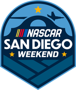 NASCAR San Diego’s official logo features the U.S. Navy’s own F/A-18 Super Hornet and elements representing land, sea, and air—underscoring the Navy’s full-domain operations.